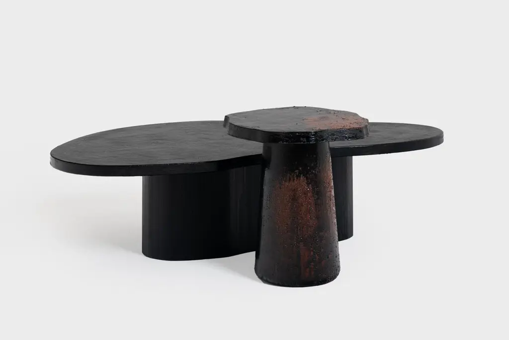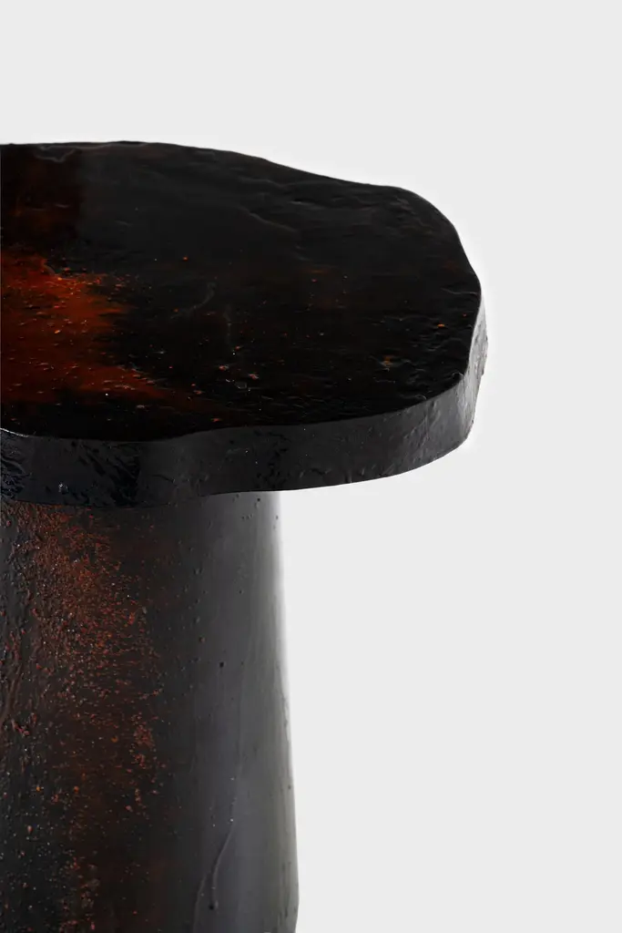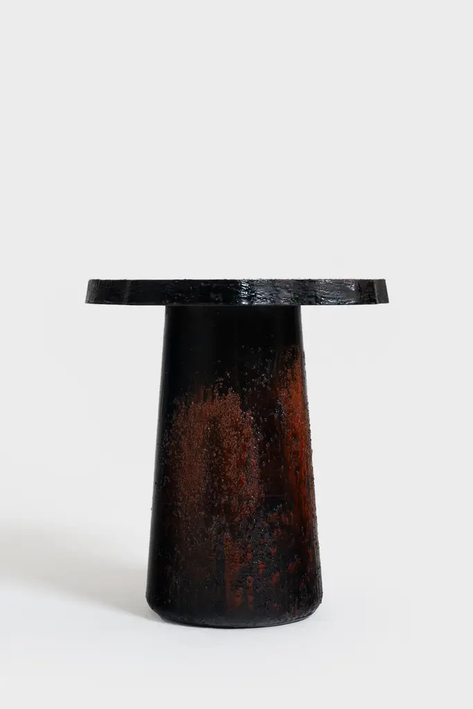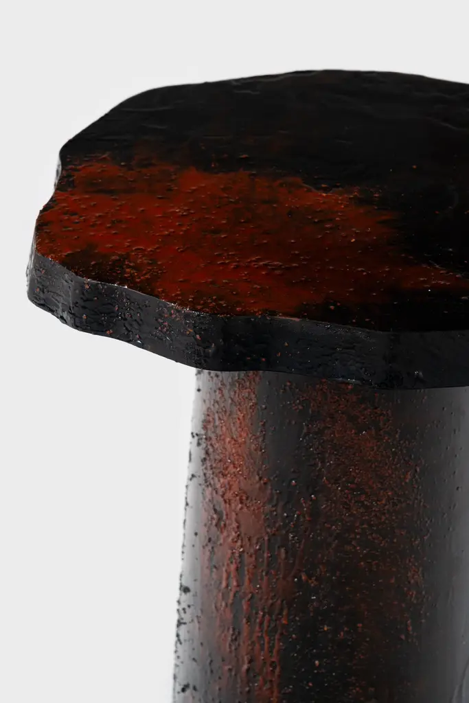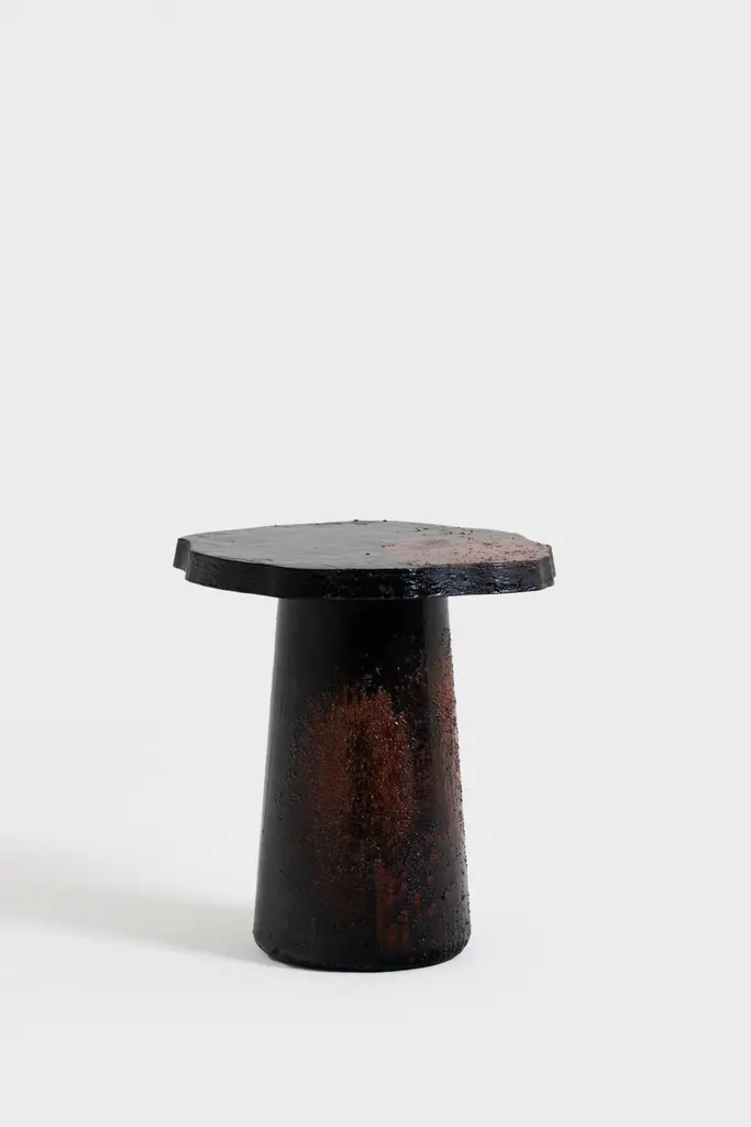 Each coffee table is part of ROU Materiaal’s Tessella Collection and can be composed in a mosaic fashion together with other sculpture tables of different sizes. Stratifications of materials given and removed several times continue to be ROU Materiaal’s field of research. The result is a surface mimicking the feeling of stone, thus creating unexpected material depths.The sculptural tables and wooden sculptures originate from the search for wood from centuries-old Italian trees that were felled due to disease or standing death. The wood is treated in a way that combines techniques that highlight the veins or natural imperfections with others that give a more contemporary texture, such as fire, sands, gilding, and resins.ROU Materiaal works in close collaboration with highly skilled local artisans who bring decades—if not generations—of tradition and expertise. The carpenter, whose family workshop has been active for generations, also specializes in the restoration of antique furniture and historic architectural woodwork. The blacksmith is both artisan and artist, crafting the bases and pedestals of ROU Materiaal’s works by hand in his countryside workshop near Ravenna, using time-honored traditional techniques that he also applies to his own artistic creations.Since the foundation of ROU Materiaal, Marzia and Monica have developed a unique surface treatment technique that is constantly evolving. Rooted in both traditional restoration practices and the art of Chinese lacquer, this method is reinterpreted with a contemporary sensibility. Layers of acrylics and resins are applied and then partially removed after drying, sometimes combined with other materials such as sand, cement, mortar, stucco, mosaic tesserae, gold leaf, lapis lazuli powder, straw, and more. Fire is also used as a material and gesture within the process.The method of layering and subtracting follows an intuitive rhythm, ending when Marzia and Monica feel that a specific version, texture, or balance has been achieved. Much of the final outcome depends on their emotional state, instincts, and the element of surprise introduced by chemical reactions. These reactions are often deliberately provoked through "wrong" or unexpected combinations, in order to obtain unique, imperfect, and unrepeatable effects.Though the Tessella Collection is conceived as an open edition, each piece is rendered one-of-a-kind due to the chromatic nuances and the three-dimensional depth achieved through this distinctive, expressive process.Open edition.Standard production time is approximately 8–9 weeks.For projects involving multiple units, production time may vary.
