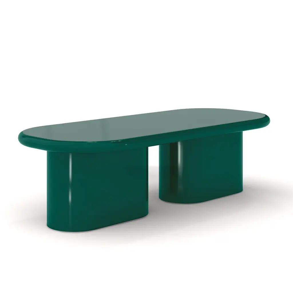 The Cornetta green coffee table is a striking piece featured in the Franca e Allegra collection, capturing the essence of 1960s design with its striking shapes and vibrant aesthetics. Crafted with a super glossy MDF wood structure, this table seamlessly blends functionality with playful elegance. Its unique combination of monolithic forms and soft curves invites both admiration and interaction, making it an ideal centerpiece for any room. Inspired by the charm of past generations, this coffee table embodies both a serious and whimsical character, adding a touch of sophistication to homes that appreciate retro flair and contemporary artistry.