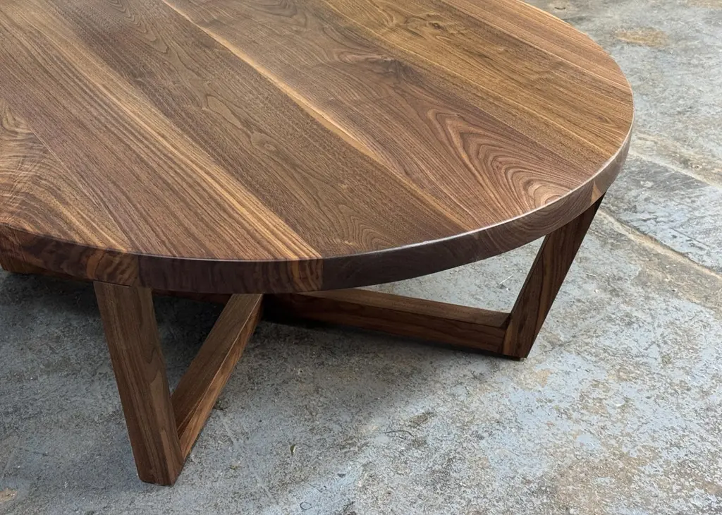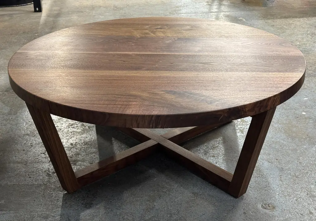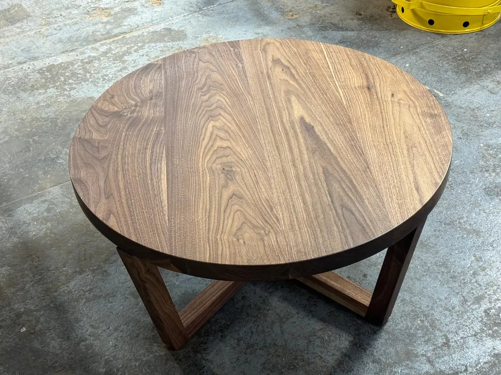 Contemporary round coffee table made using 1.75"x1.75" thick solid wood frame members, joined using mortise and tenon joinery. Top is solid wood, 1.5" thick. Table is finished using Osmo hard wax/oil. This is a stylish, solid addition to any contemporary or transitional space.Price listed is for 42" diameter - we offer custom sizes for this table.Ships fully assembled.Made in Portland, OR.