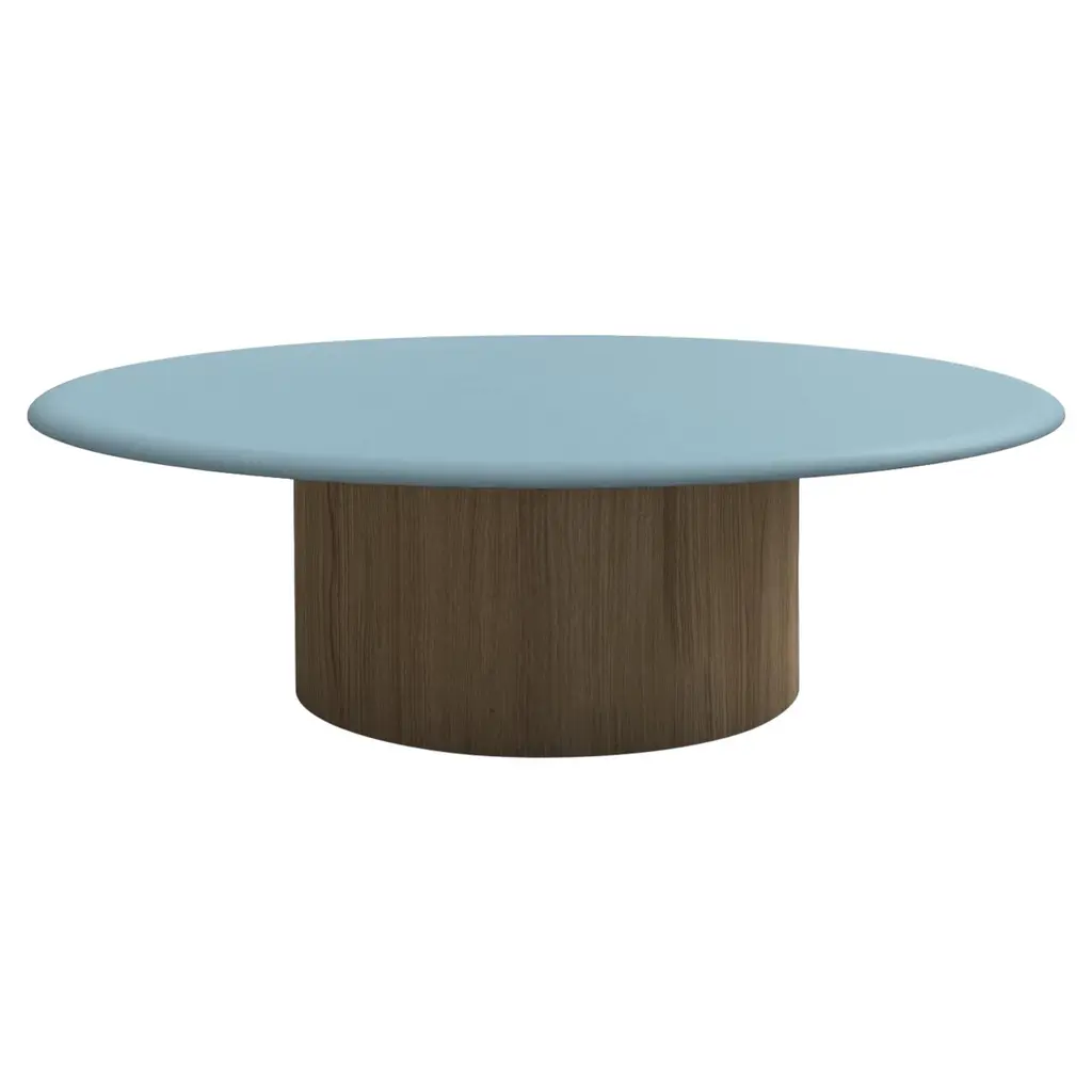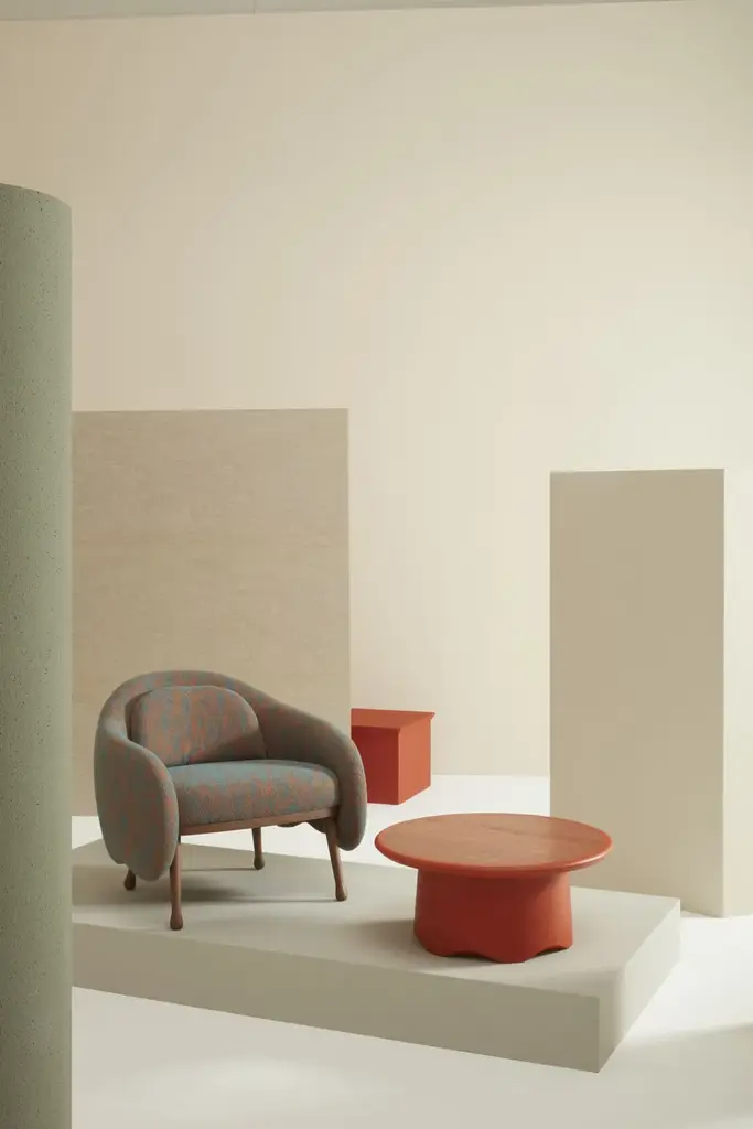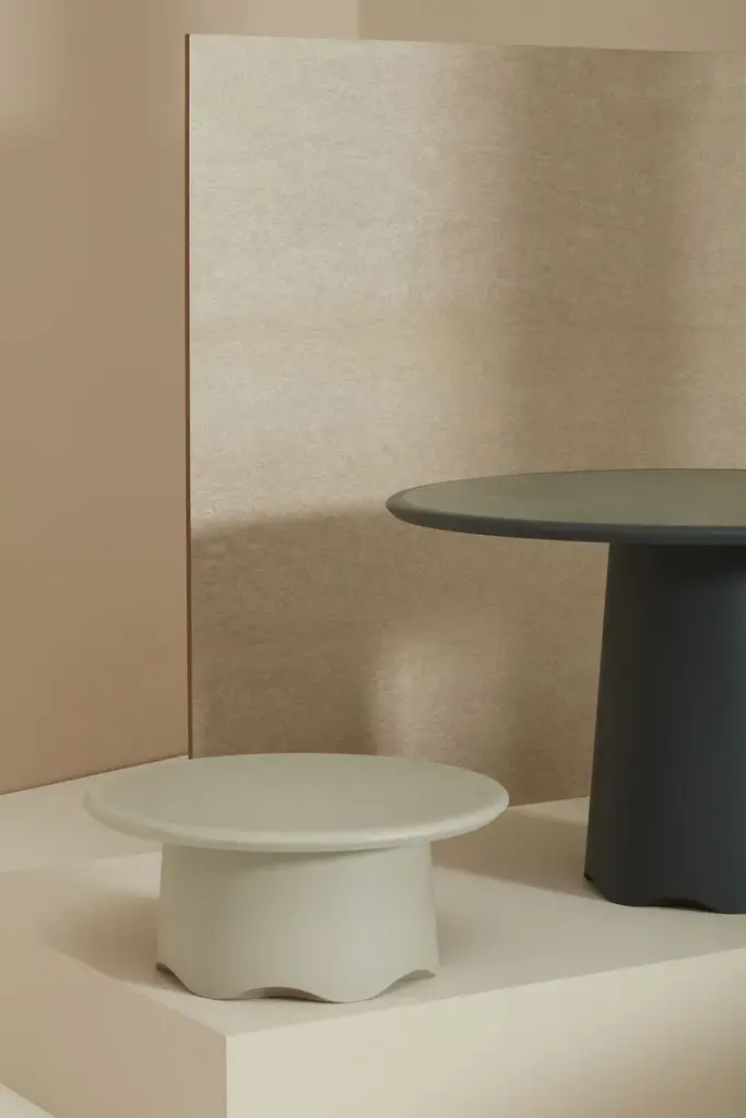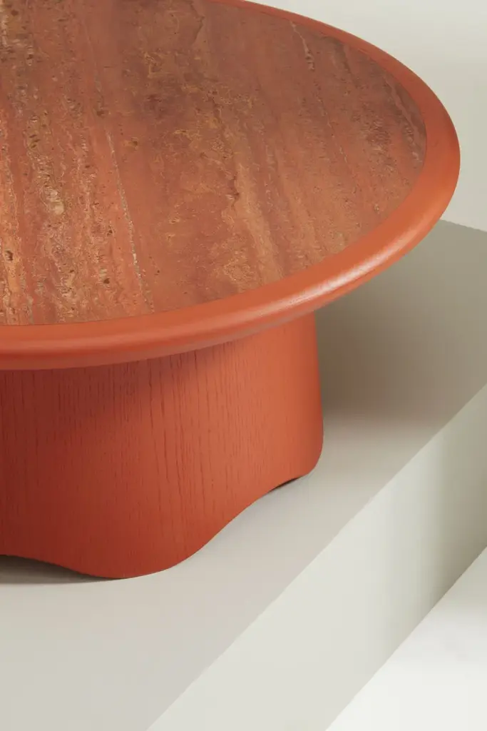 Corolla 280 is a low round coffee table with a solid ash wood frame and a top available in ash, cork, or Travertine stone.Corolla is a collection of seating and tables with soft, harmonious shapes designed by Cristina Celestino.In the armchairs, the rounded volumes are lightened by the crafted wooden base, a signature detail of Billiani.The wavy lines draw inspiration from the fashion world, whose allure is also reflected in the quality of the upholstery—best expressed through the combination of different colors and textures between the frame and cushions.Available in three sizes, the tables combine a conical base featuring characteristic undulations with a round top in various finishes, set within an outer frame.