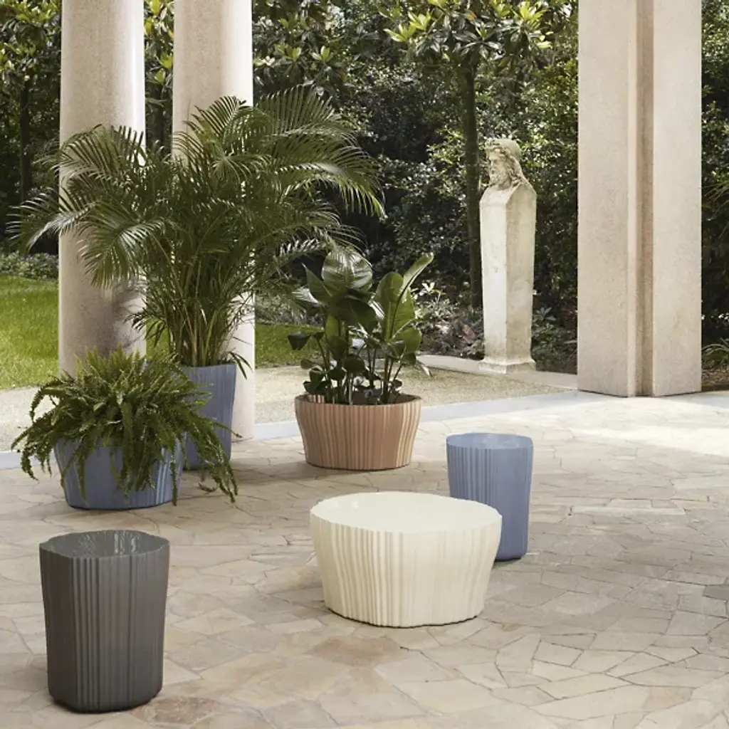 The Corteza Coffee Table from Kartell brings nature-inspired textures into contemporary spaces. Patricia Urquiola's design features unique striations in the recycled polyethylene surface that mimic tree bark patterns. This table serves as a functional surface for beverages and books while doubling as a sculptural element in living rooms, patios, or sunrooms. The recycled material construction demonstrates eco-conscious design principles without sacrificing functionality. Its weather-resistant properties make it equally at home in covered outdoor spaces as in indoor settings.