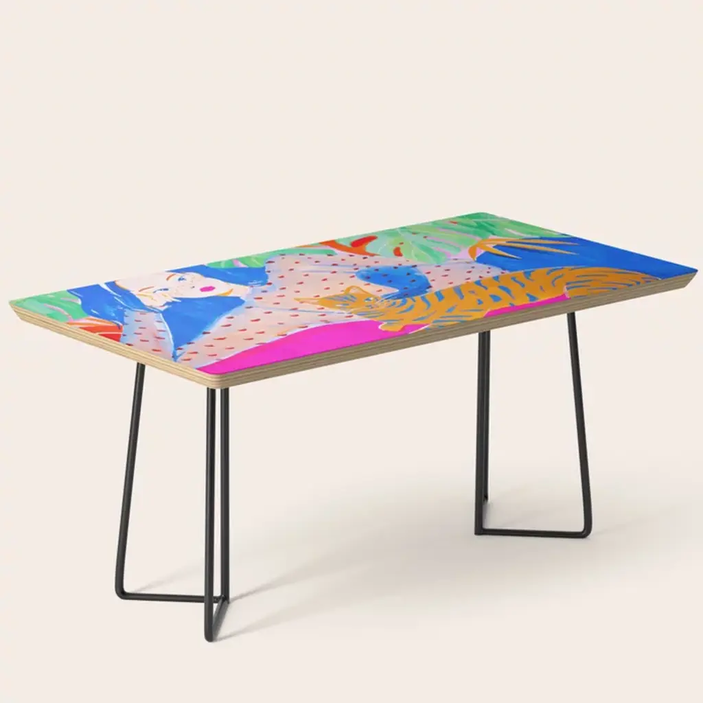 35.75" x 17.75" x 17" (H)Baltic birch table top with beveled edgeHigh quality print with satin finishSteel legs available in black or goldAssembly requiredEvery order is made just for youSHIPPING: Items are made to order and typically ship within 3-4 business days. Click here for more information about delivery options.Furniture sales are final. Click here for more information on returns.