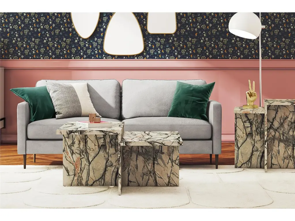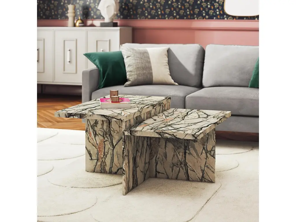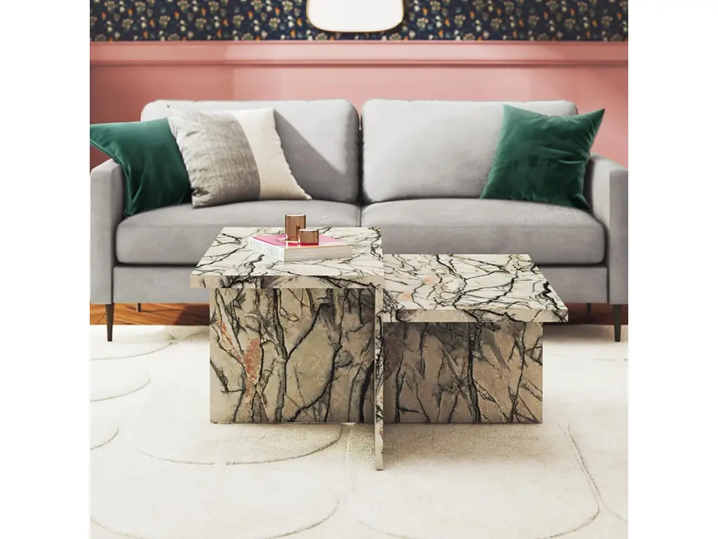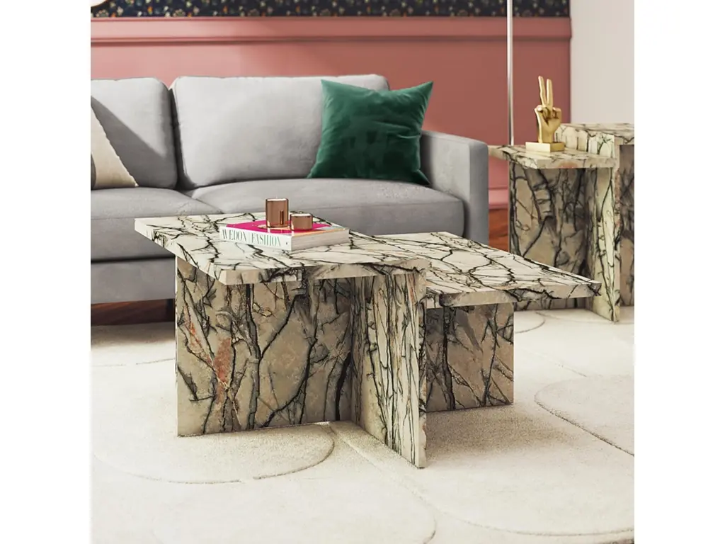Prepare to captivate your guests with a stunning focal point that seamlessly blends luxury and practicality. The CosmoLiving by Cosmopolitan Brielle Faux Marble Coffee Table embodies urban elegance and contemporary chic, all at a price that suits your economically savvy lifestyle. The bone-colored faux marble, with graphite, pale silver, and dark taupe veining, is both stylish and versatile, effortlessly transforming your living room decor with a touch of sophistication. Crafted from ultra-durable engineered wood with a faux marble finish, this two-tiered masterpiece promises longevity and resilience, ensuring it remains a centerpiece in your home for years to come. The effortless assembly process means you can enjoy its beauty almost immediately. The Brielle Coffee Table, with its range of chic color options and matching accent table (sold separately), is your ticket to a stylish and cohesive living space!