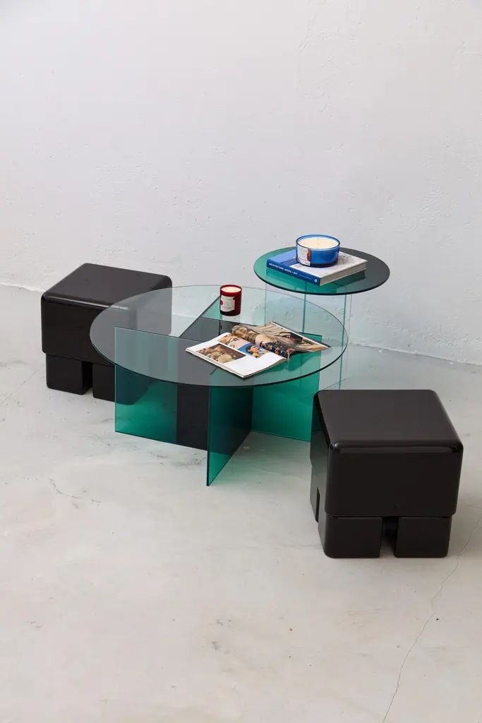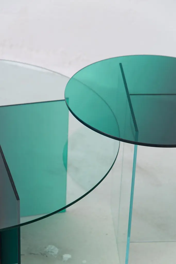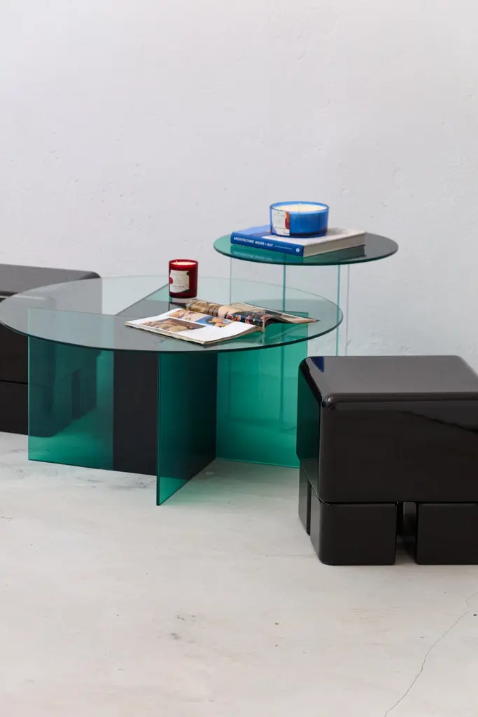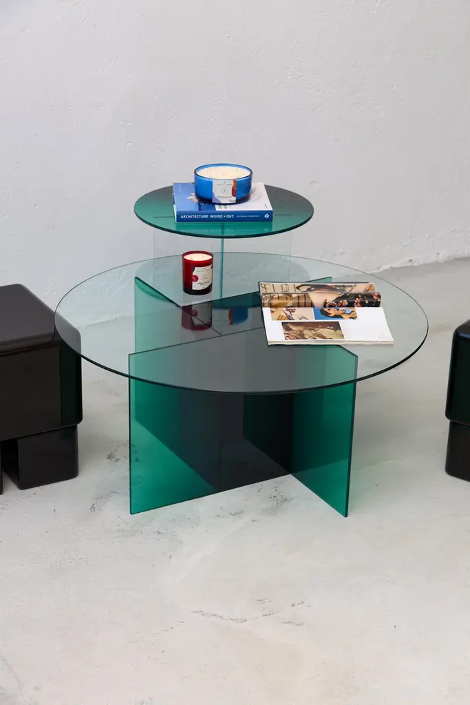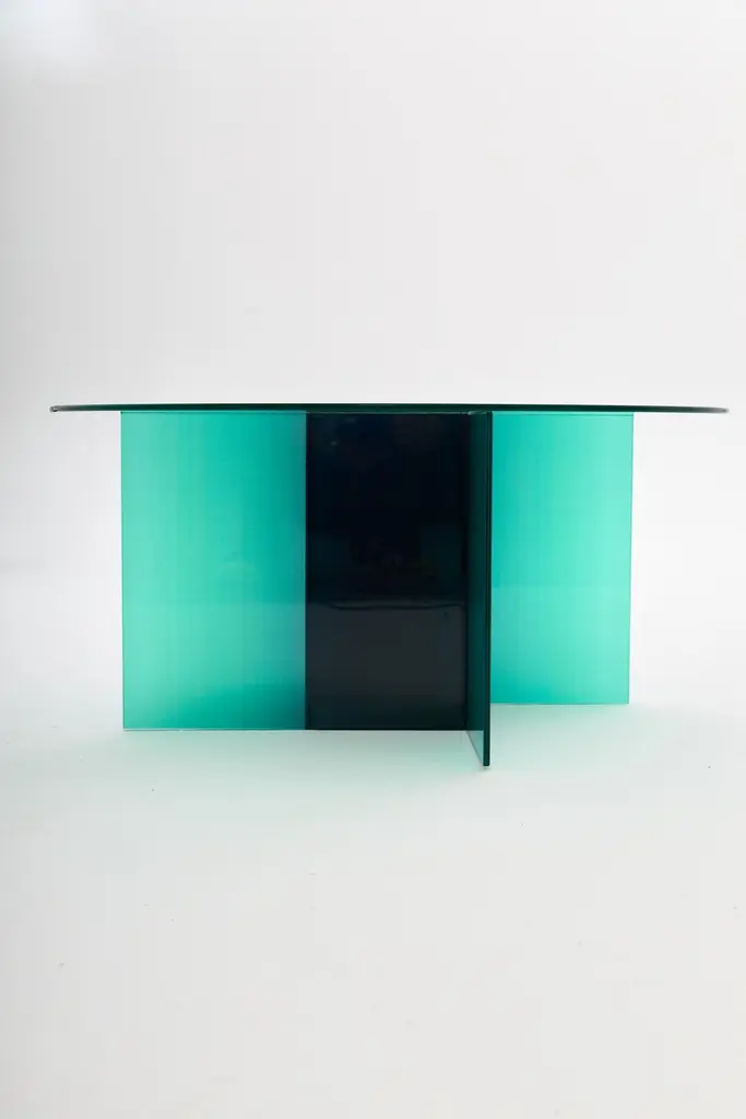 Cosmos Green Coffee Table by Studio MonsoleilDimensions: Ø 90 x H 45 cm.Materials: Laminated glass.The Cosmos table series is created by combining glasses with gradient color transitions with a special bonding technique. Coffee tables are located in the center of the sitting areas; In addition to being the focal point of the place, it witnesses many different ideas, colors, and meetings.Makes every place livable in different scales we are in; It is the combination of different ideas and colors in harmony.Monsoleil was established in 2021 in Istanbul with a focus on the design of meaningful yet playful pieces. We have a desire to propose a new vision of furniture and object design associated with art. Our products combine creativity with local craftsmanship to form unique pieces with purpose. Our products have been featured in numerous prestigious publications such as Matson Francaise and Elle Oscar. In 2023, we participated in Dubai Design Week in collaboration with Isola Design. and we aim to be present at more design weeks In the coming years. Additionally, in 2023, we launched a small collection of decorative glassware for 011evneli Gallery. Monocled aims to expand its collection by collaborating with different new designers and brands, to blend various design approaches.