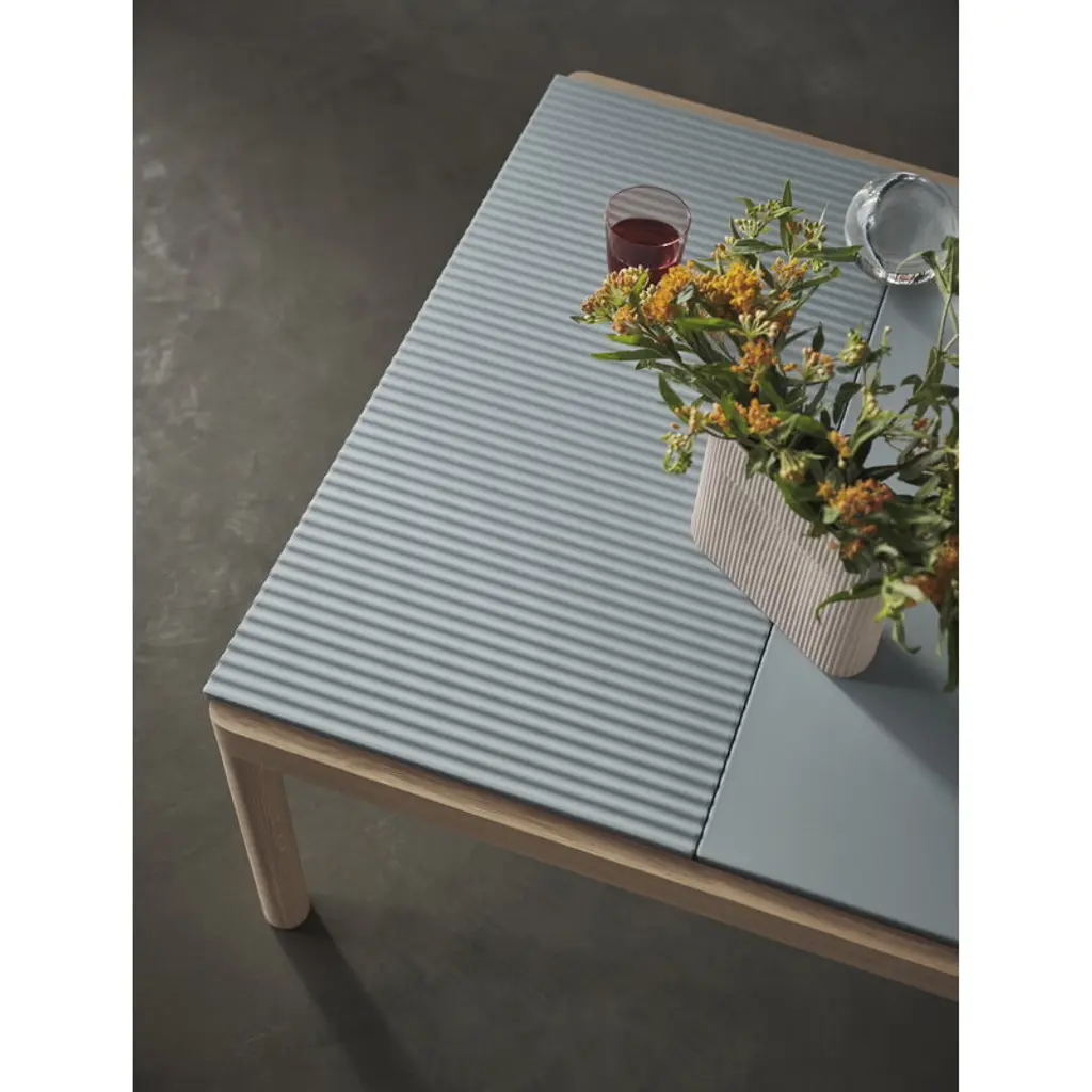Muuto's Couple coffee table captivates with a blend of different materials, shapes, and surfaces. Designer Sylvain Willenz draw inspiration from traditional tile tables but added a unique twist by combining the ceramic stoneware surface with the warmth of oak legs. The tabletop features a plain side and a gently wavy side, adding even more character to the look of the coffee table. The Couple table is the perfect eye-catcher for the home living room as well as public spaces, bringing both style and functionality to any setting.
