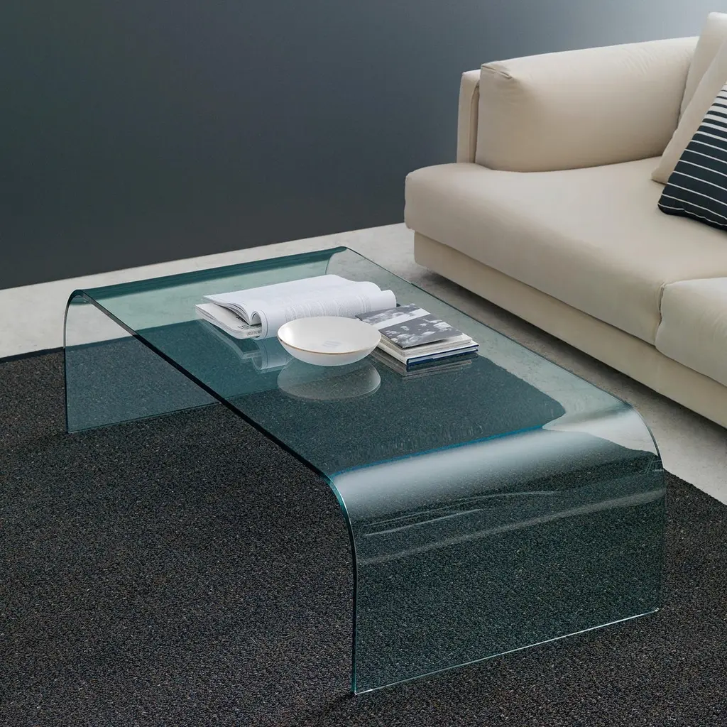 Coffee table Courbe in solid fusedclear glass, 10mm thickness.Available in L 120 x D 70 x H 40 cm, price: 2900,00€Also available in L 60 x D 40 x H 40 cm, price: 1950,00€.