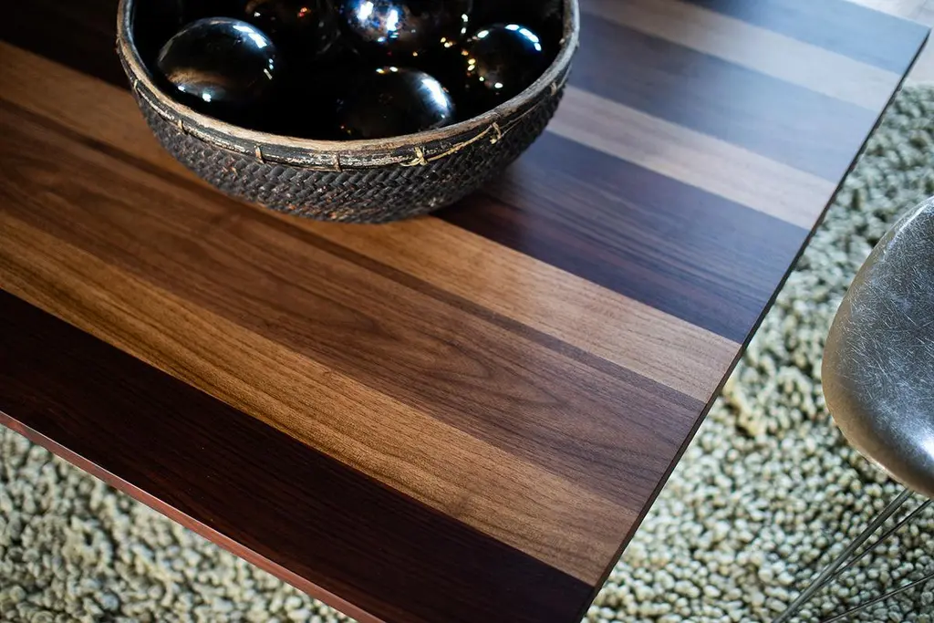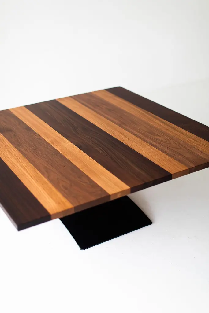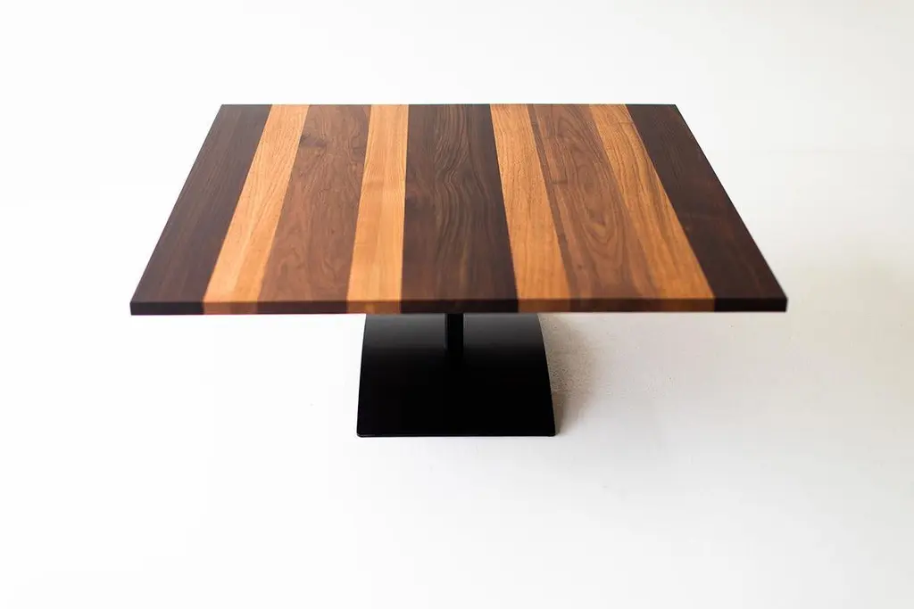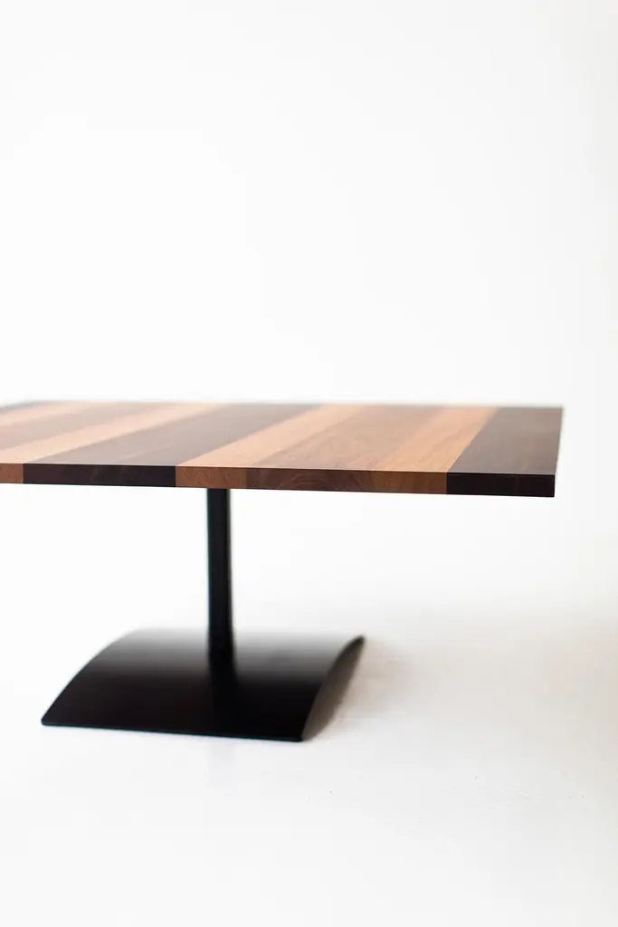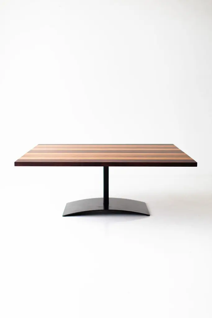 CraftAssociates Coffee Tables, Milo Baughman Pedestal Coffee Table, Striped TopThe Milo Baughman Striped Top Coffee Table for Craft Associates® Furniture is expertly crafted. This is a licensed reintroduction by Craft Associates. The base is constructed in American steel in a matte black. The wood top is crafted by artisans and finished with a commercial grade finish.Each piece is hand made to order and customizable. Different wood species, finishes and dimensions are available.Craft Associates® Furniture is proud each piece is made in the US. We strive to craft a product that will stand the test of time. We use the best materials and have the best craftsman in the business. We stand 100% behind our product.Designed by Milo Baughman, this coffee table carries forward his legacy of clean lines, elegant forms, and functionality. It’s more than just a piece of furniture; we're proud to carry on Baughman’s enduring influence on modern design."Contemporary design at its timeless best." One of the most influential American furniture designers of the late 20th century, Milo Baughman, embodied contemporary design and adeptness in every creation. His work mainly revolved around residential furnishings. His Gallery 1 includes a variety of useful and simple contemporary pieces for the home. Drawing inspiration from fellow Californians Charles and Ray Eames, Baughman’s designs exuded a relaxed and breezy air, steering clear from ostentatious designs. His aesthetic simplicity was exceptionally profound, relying heavily on sturdy flat-bar chromed metal for seating and table frames, beautifully figured wood veneers and balanced geometric proportions. Designer: Milo BaughmanManufacturer: Craft Associates® Modern FurniturePeriod/Model: Mid Century ModernSpecs: Walnut, Rosewood, Butternut, Matte Black Base dimensions H: 16"W: 42"D: 42"pricingPricing to trade: YesSKU: CraftAssociates Coffee Tables, Milo Baughman Pedestal Coffee Table, Striped Top