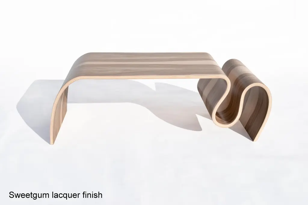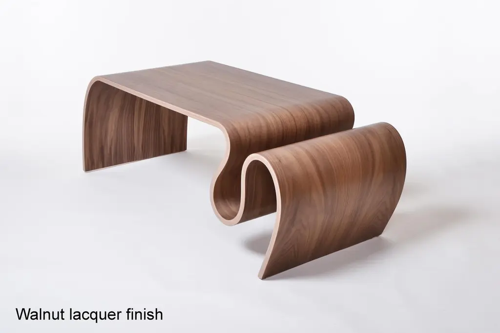 The design of this table is very unique and unusual, it would be a great touch of modernity in your home design.This coffee table is made with laminated bent plywood, Sweet Gum veneer.Overall e: 16" H x 48" W x 20" D