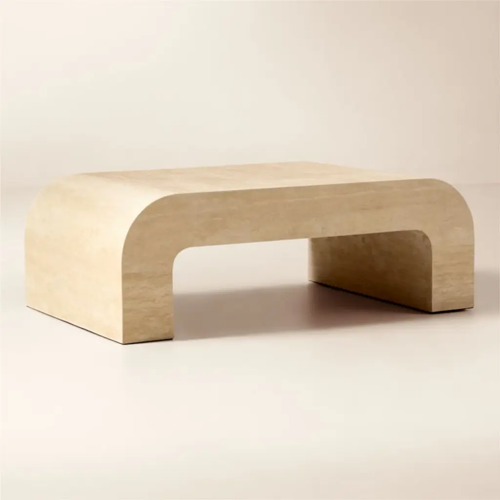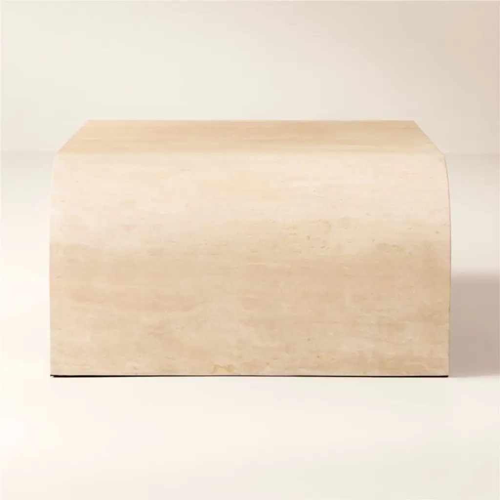 Crescent 46" Square Travertine Coffee Table