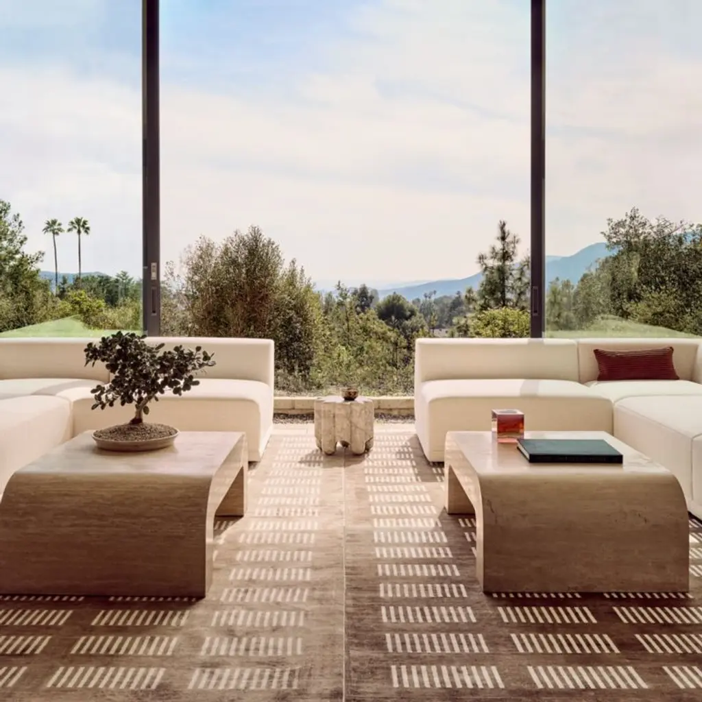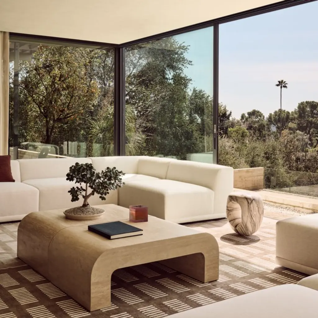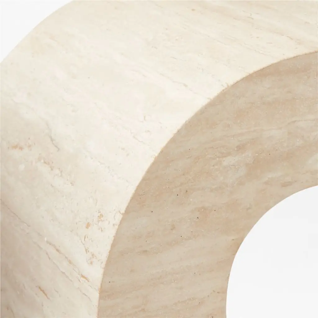 "From afar, the Crescent table has a striking form," says Ceci Thompson of VUUE. "When up close, it is the natural texture that makes an impression." Inspired by modern silhouettes and unique materials of the 1970s, her design transforms a simple U-shape into a statement coffee table. The minimalist silhouette showcases the natural beauty of Turkish travertine, which is meticulously cut into ultra-thin slabs and expertly curved to envelop the table's wooden frame. This labor-intensive process highlights the organic textures and subtle color variations unique to the stone. No two pieces will be identical. CB2 exclusive.