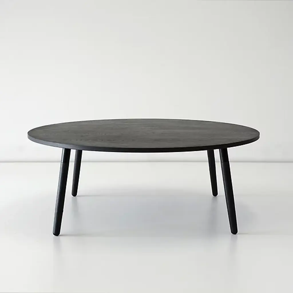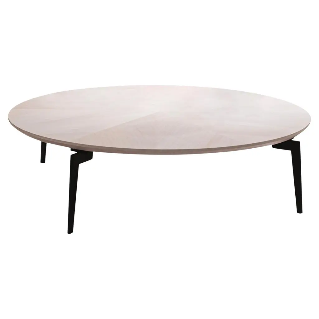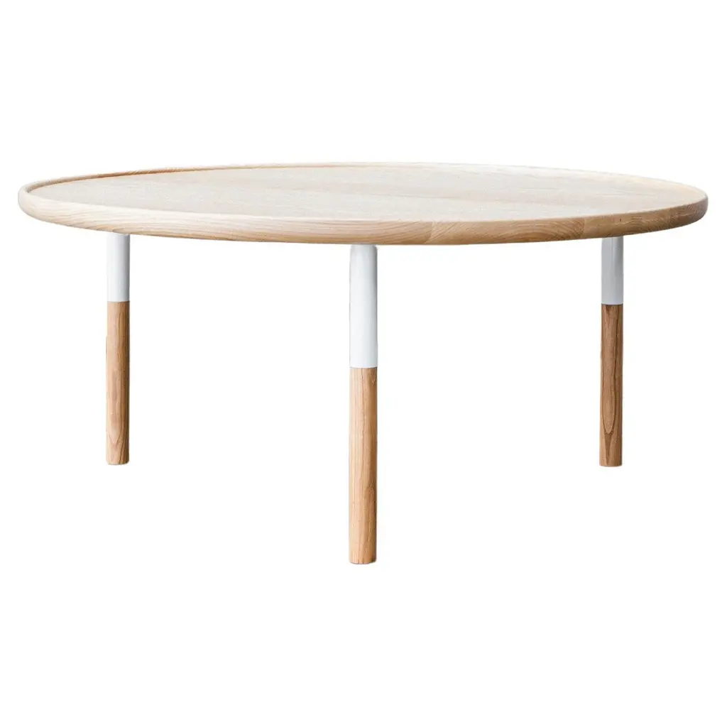A perfect living room companion, the Crescenttown Coffee Table meshes easily with the individual personality of any space. The table is handmade in America and features a round table top supported by a four legged base design with accents. The table top and legs are made with solid white oak wood and accented by cold-rolled steel that is powder-coated. This table comes in multiple sizes, from small to large, many wood finishes and two bracket colors to match any room decor. The Crescenttown design is also available as a Tall Side Table and a Short Side Table.