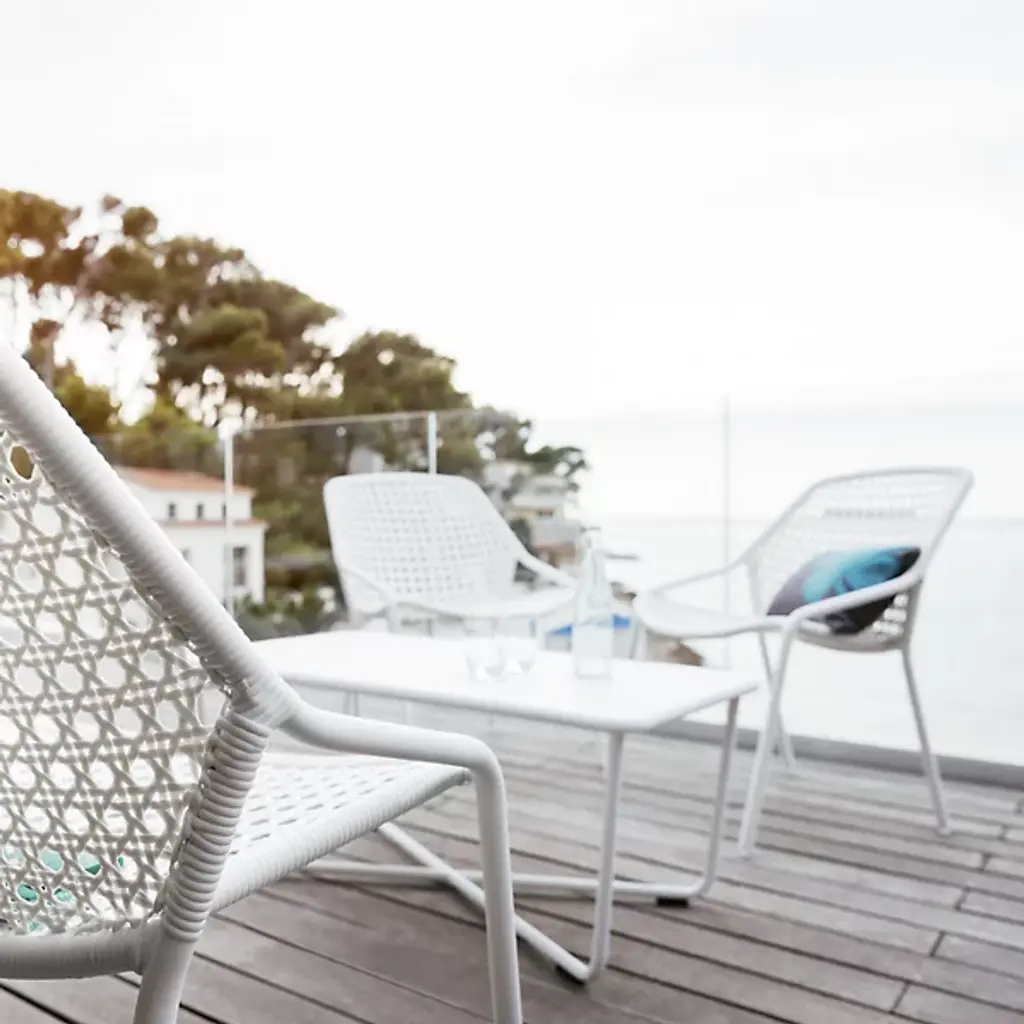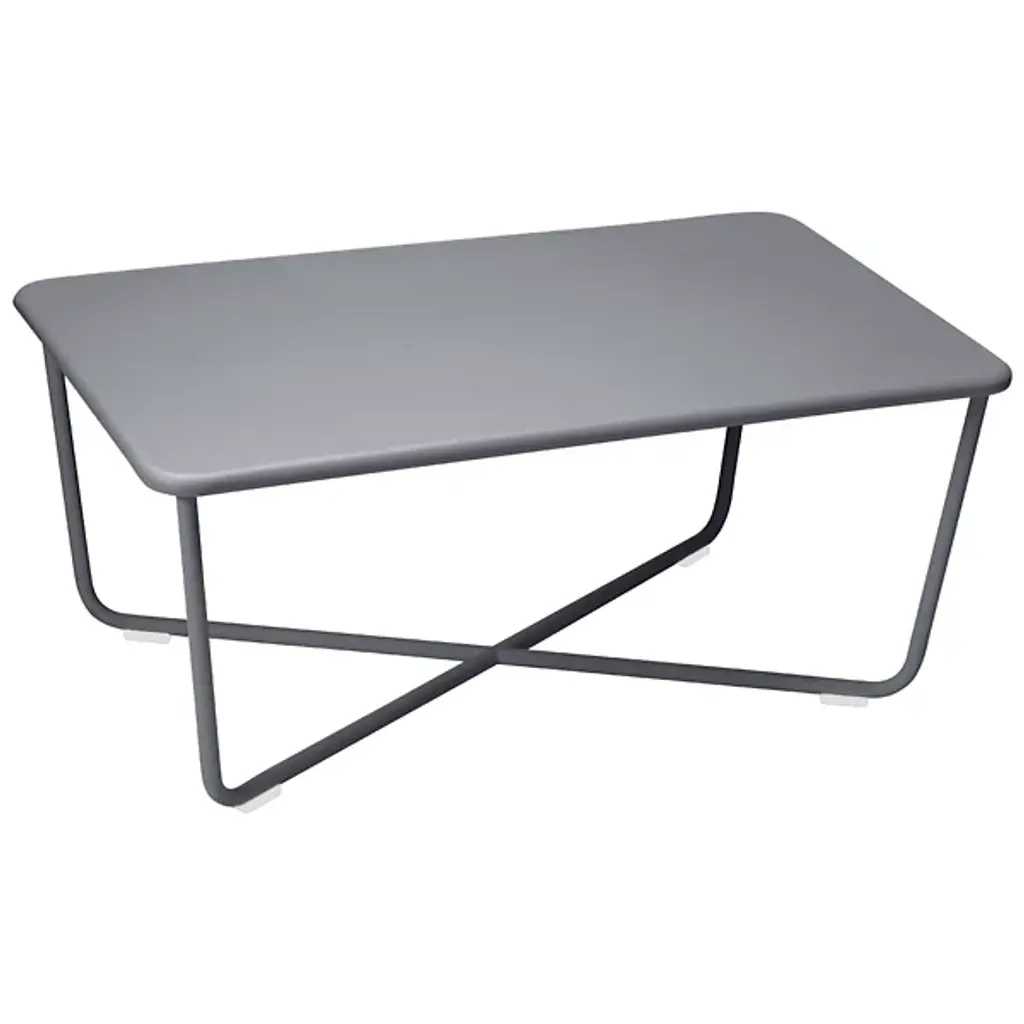 The Fermob Croisette Low Table is a large and low coffee table for roomy outdoor lounge areas. While it's made entirely out of steel, the table matches the aluminum frames of the synthetic wicker Croisette seating pieces with its crossed tubular base. Available in more than 20 colors.