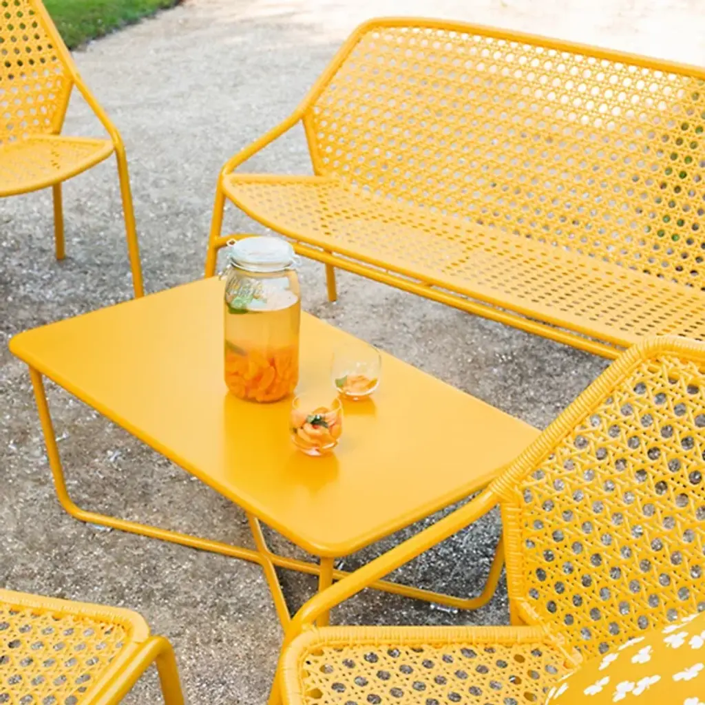The Fermob Croisette Low Table is a large and low coffee table for roomy outdoor lounge areas. While it's made entirely out of steel, the table matches the aluminum frames of the synthetic wicker Croisette seating pieces with its crossed tubular base. Available in more than 20 colors.