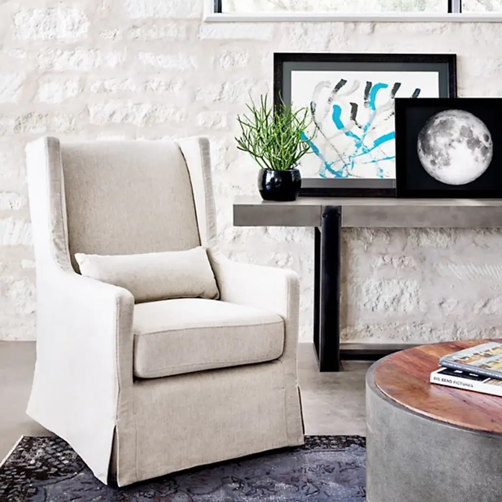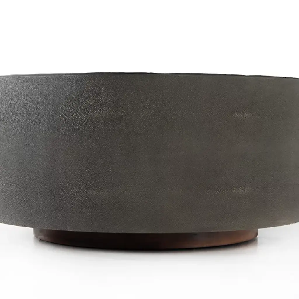 The Crosby Coffee Table from Four Hands, designed in collaboration with Thomas Bina, is proof of the beauty of contrast. This piece combines the reclaimed peroba wood's rugged charm with the faux shagreen's chic allure. The table's simplicity in form belies its complex interplay of textures - the weathered warmth of wood floating atop a sea of soft grey, tactile elegance. Its modest yet bold design makes it a standout piece, perfect for anchoring your living space with its unique combination of rustic and urbane elements.