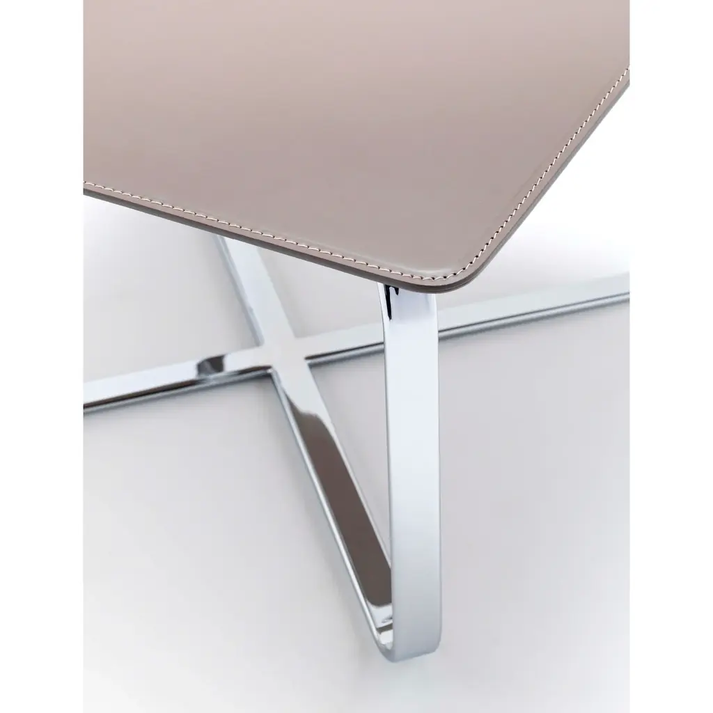 Mezze is the square coffee table with a steel base available in various finishes by Fasem. It comes with the tabletop in three versions: white Carrara marble, Emperador marble, or MDF covered in full-grain leather by Fasem, featuring contrasting visible stitching.