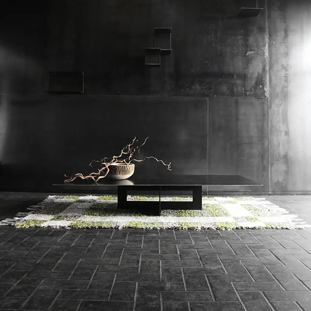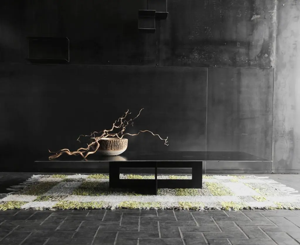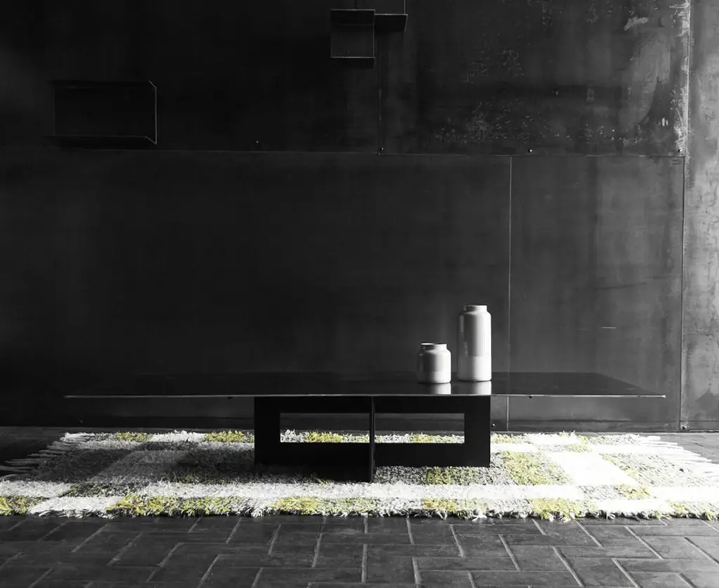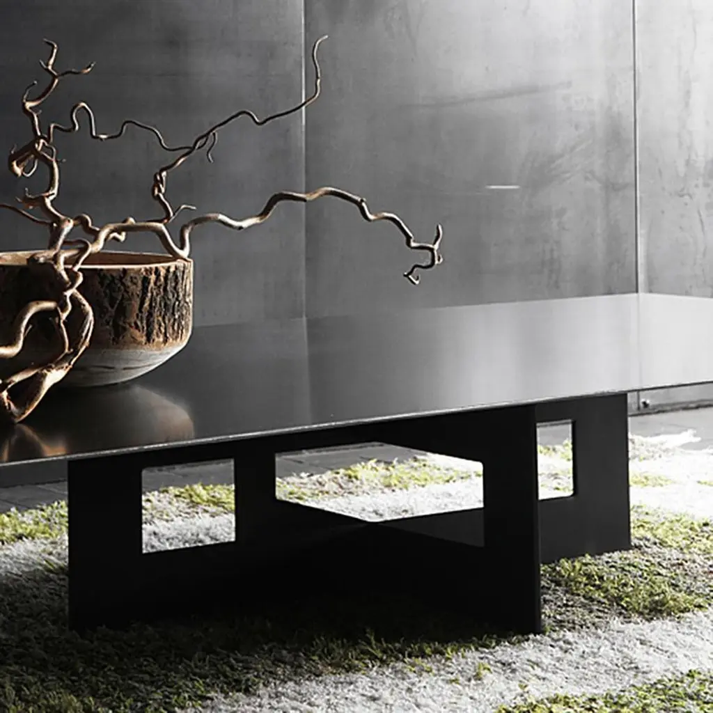 Coffee table crossed steel in handcraftedsteel, dark finish. French manufacture,colorless varnished, custom made available.