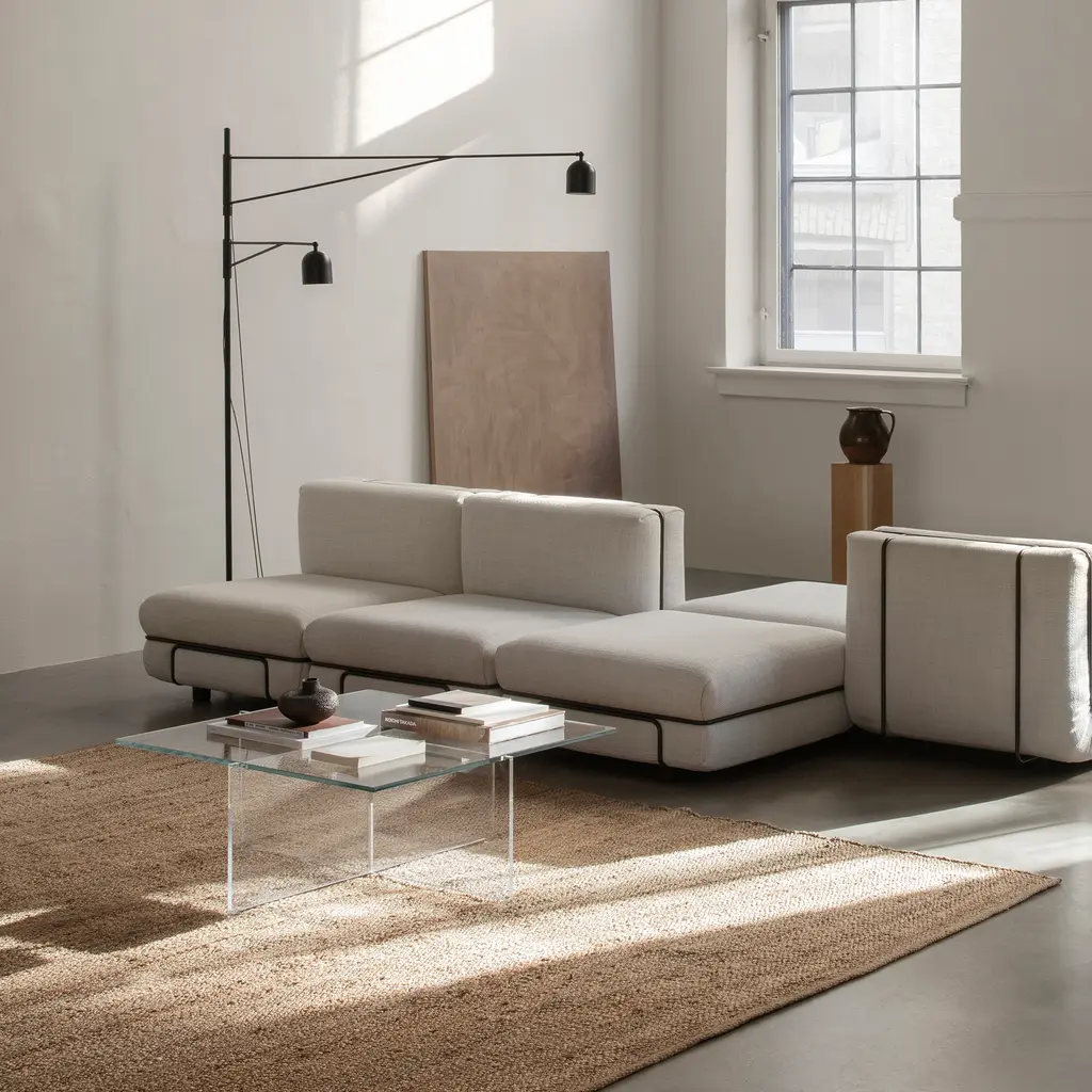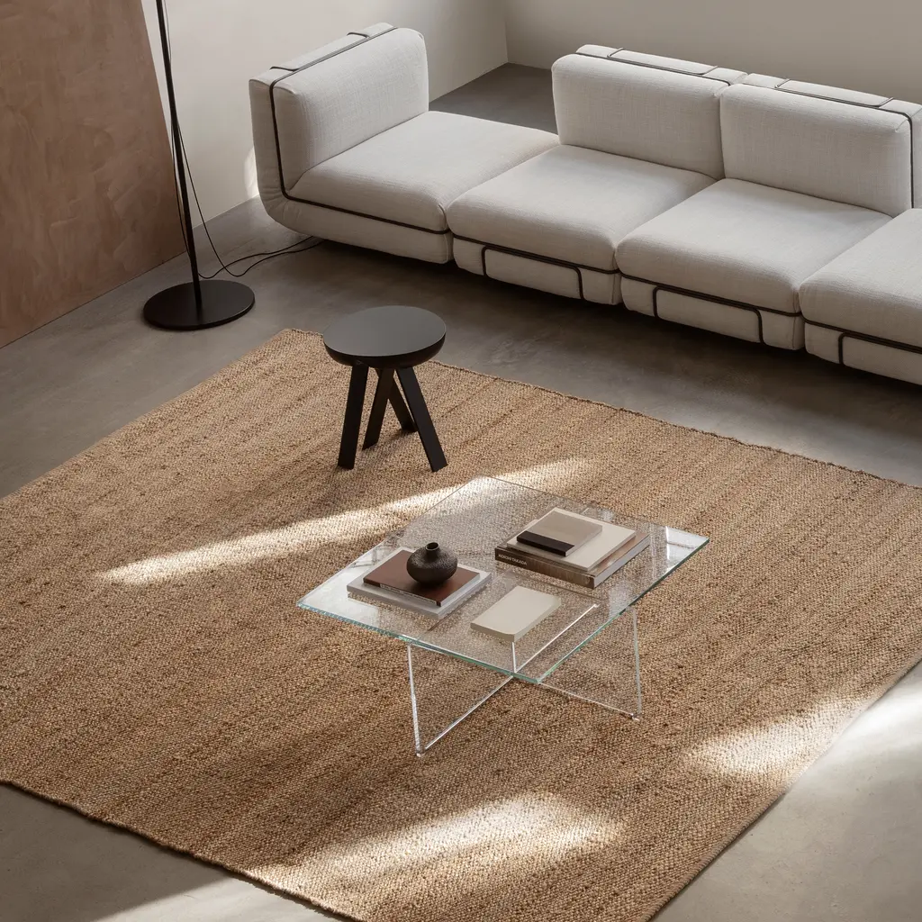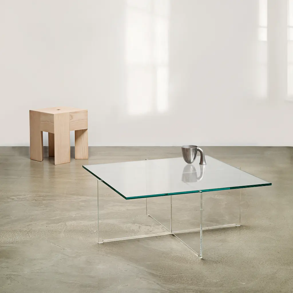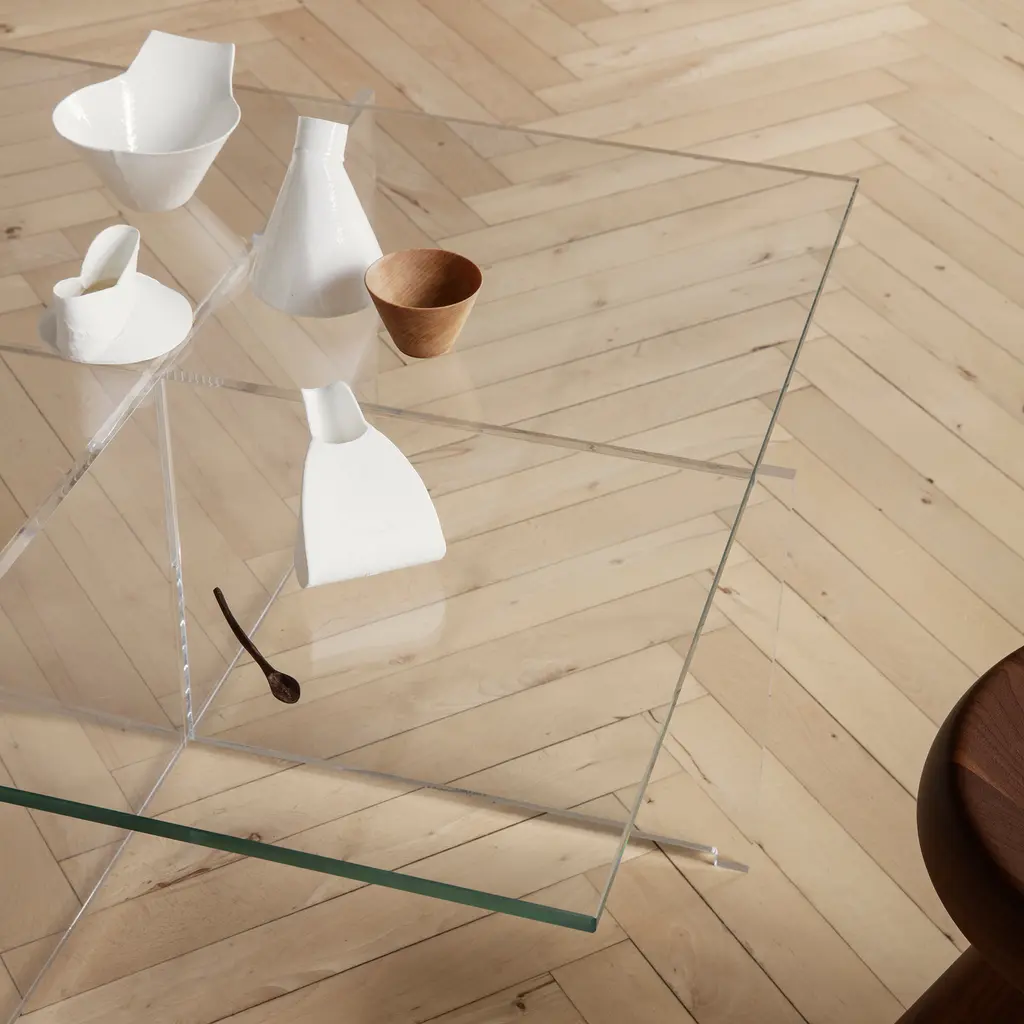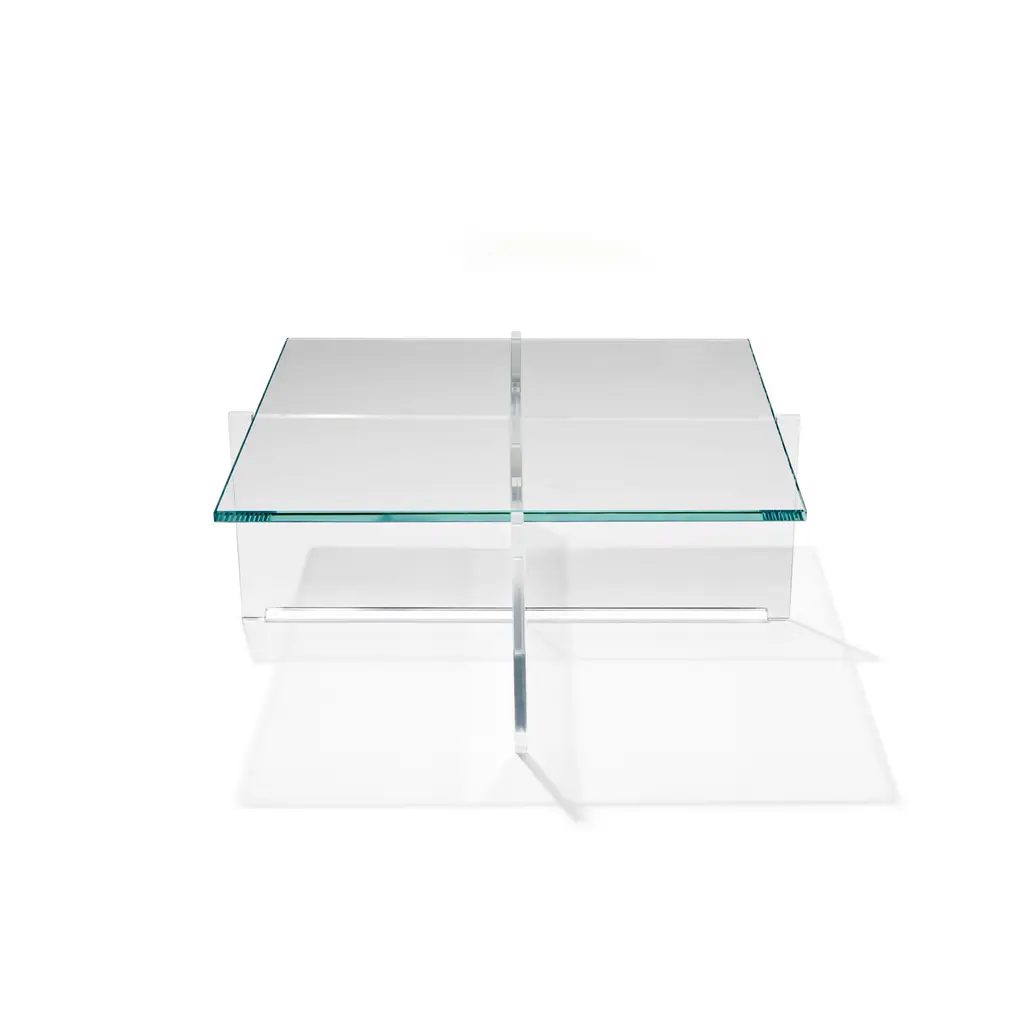 The transparency of glass and acrylic meet the timelessness of minimalist design in the Karakter Crossplex Low Glass Coffee Table Square. Designed by Bodil Kjær, this table has a cruciform base and a square top. The lightness of the clear materials makes this piece of furniture add a feather-light touch to a room’s décor, but Crossplex also stands out with its distinctive design. Ideal for any contemporary space, this transparent coffee table complements light or dark color schemes as well as earthy and warm or sleeker materials and metal finishes. Regardless of its surroundings, the Karakter Crossplex Low Glass Coffee Table Square enhances any space with its delicate presence. Manufactured in Denmark, each table is made from acrylic and glass. Sent flat-packed to minimize packaging, this product requires assembly.