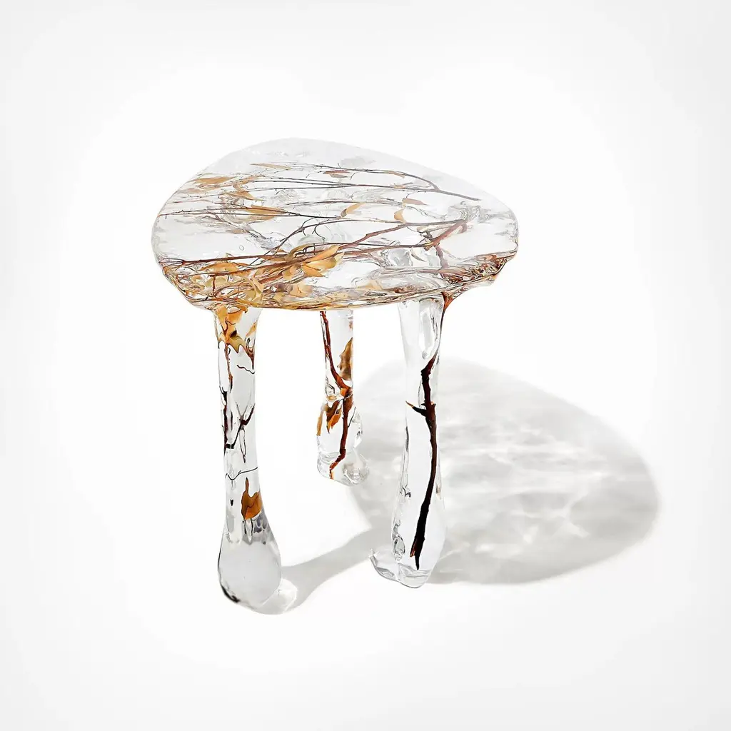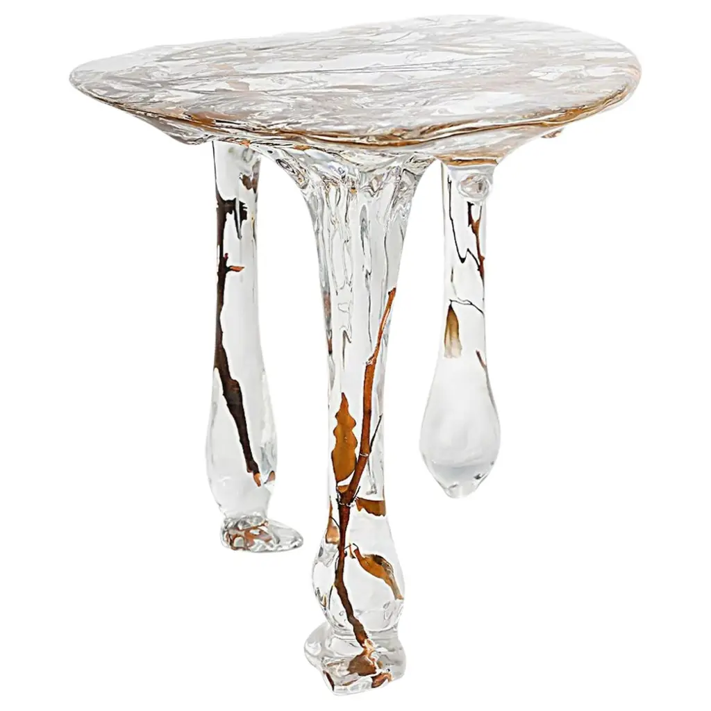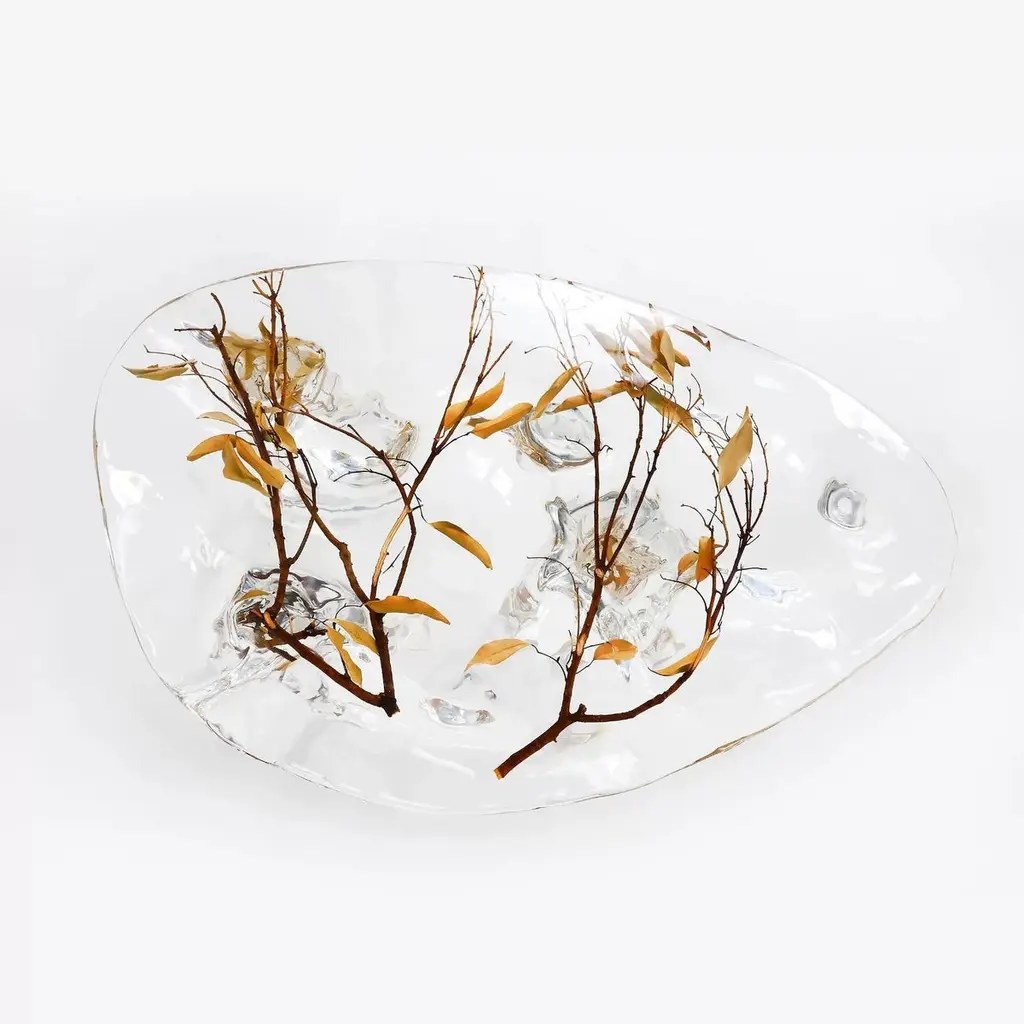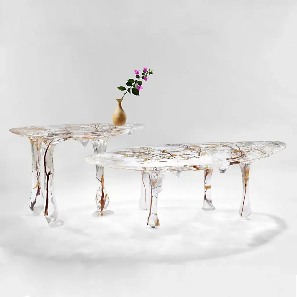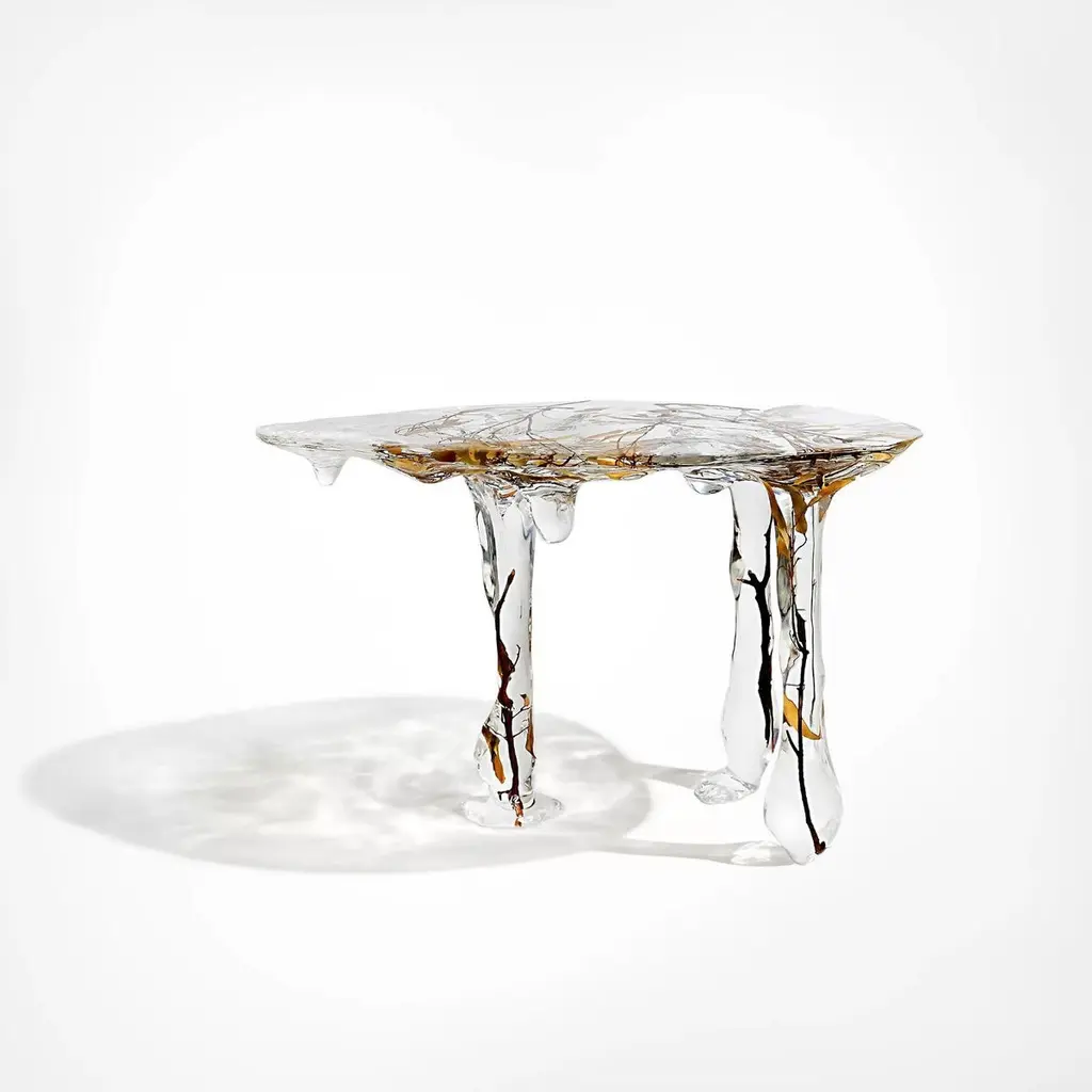 Crystal Branched Adorned Coffee Table by DainteDimensions: D 76 x W 46 x H 48.5 cm.Materials: Crystal.Available in a circular and elongated oval design. Please contact us. This finely crafted table is a sophisticated piece of decor that will significantly enhance any space in your home or office. Stunningly beautiful, this table makes a striking statement. Natural wooden branches with delicate leaves are encased in clear crystal mixed with acrylic, creating a unique table that is exquisite and timeless.With its brilliant acrylic crystal and natural branch design, this table will add style and sophistication to any room. It is an impressive decorative piece that will captivate anyone who lays eyes upon it.Features- Elegant table that will complement any space in your home, office, or business- An extraordinary and finely designed piece that is decorative and sophisticated- Features exquisitely cut clear crystal mixed with acrylic with natural wooden branches and leaves that create a unique showpiece.- Sold one-piece design with beveled edgesFounded in 2002, Dainte has steadily gained recognition for its new-wave designs and concept statements in lighting and office décor.Dainte’s core capability – transferring the power and design of crystal into uniquely-crafted lifestyle pieces – has placed the design company as one of the most prestigious brands in customized crystal innovations.Dainte debuted its innovative design offering at the ICFF Show at the Jacob K. Javits Convention Center in New York City in May 2019. The Dainte flagship line showcased the next step forward for luxury interior design, creating pieces that not only carried an identity but also told a story.The fashion-forward look and feel of Dainte’s innovations are rooted in the broad range of rich materials used. Each carefully-selected, one of a kind accessory contributes to each exceptional décor and inspired design. The finished product provides a luxury experience of high-caliber material expression.Dainte believes that each part should be contracted and selected as vital contributions to a compelling whole. One of the most essential components of Dainte designs is crystal. Crystals are known to have underlying powers, carrying a center energy capable of engaging the human senses. To elevate the interior design experience, Dainte has made crystal a central nuance of its design capabilities.Combining expertise in crystal with other complementary materials, Dainte has stepped forward to present the world with a completely redefined interior design experience when it comes to balancing the elegant powers that harmonize lifestyle.