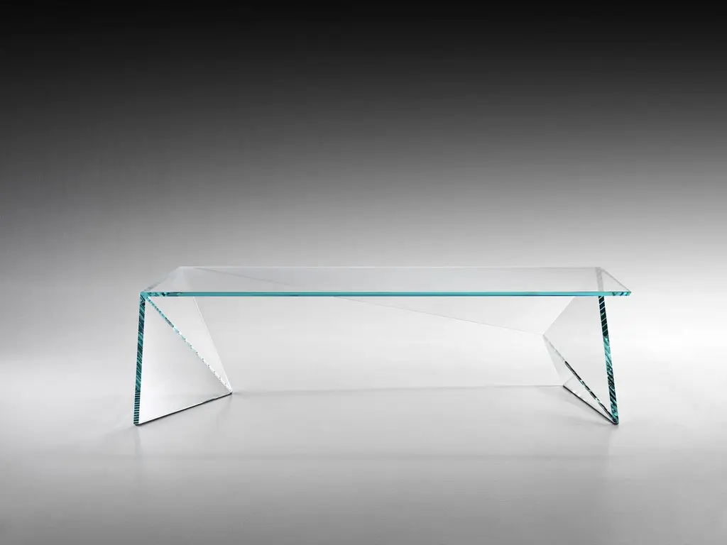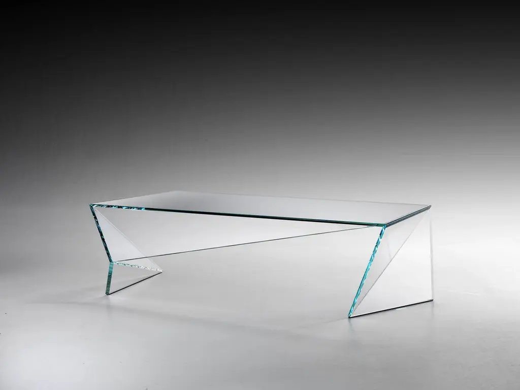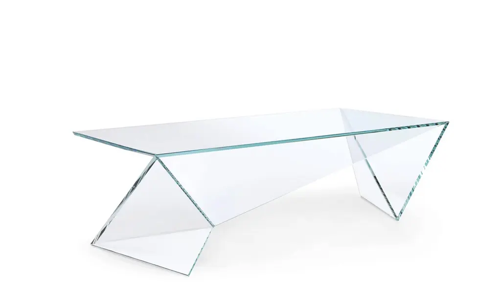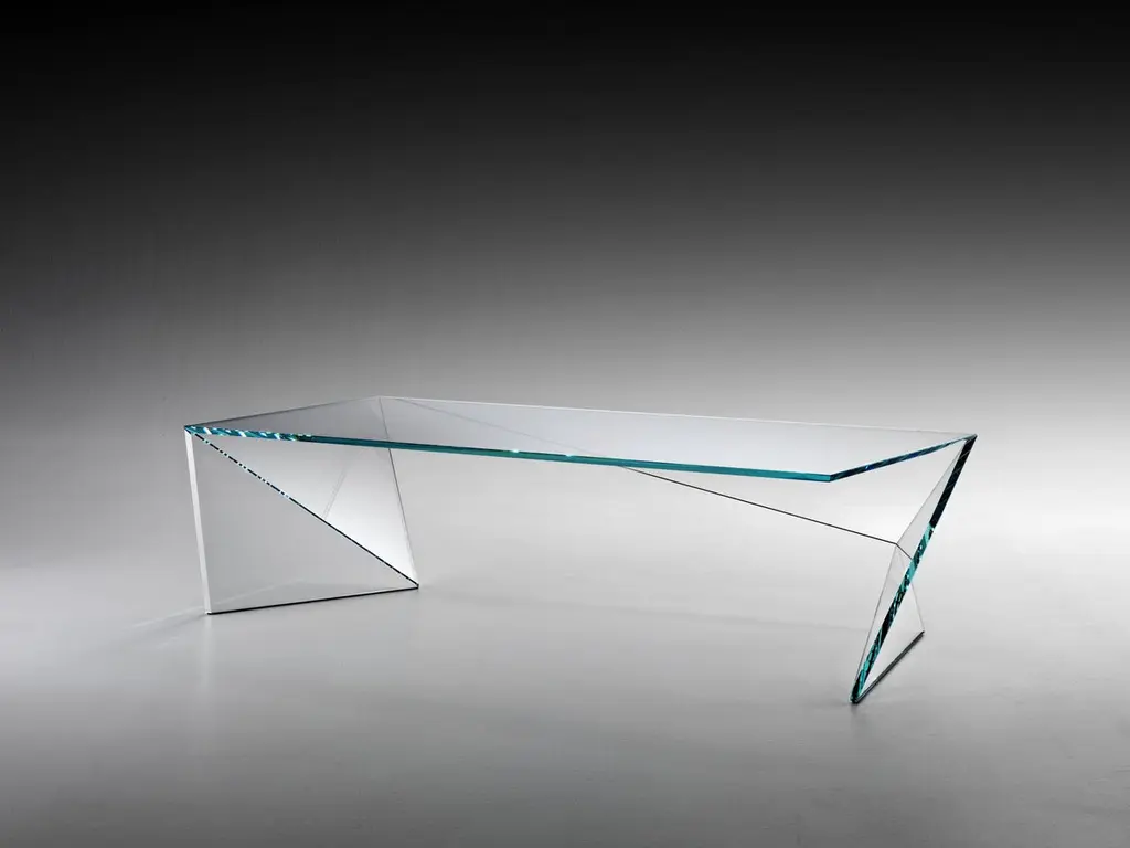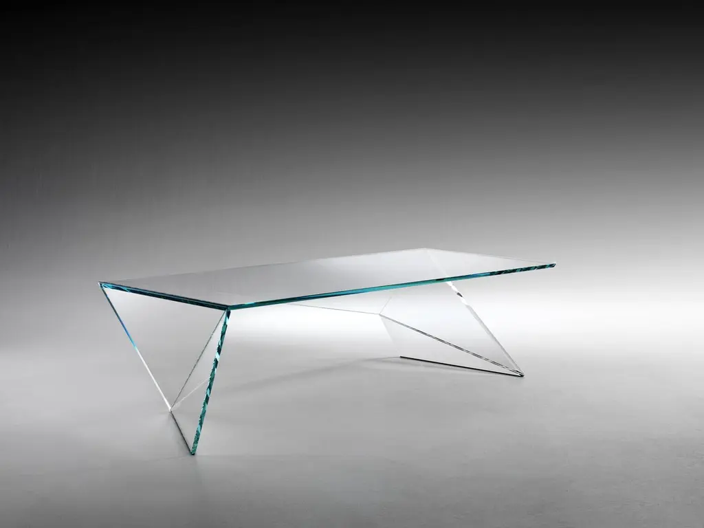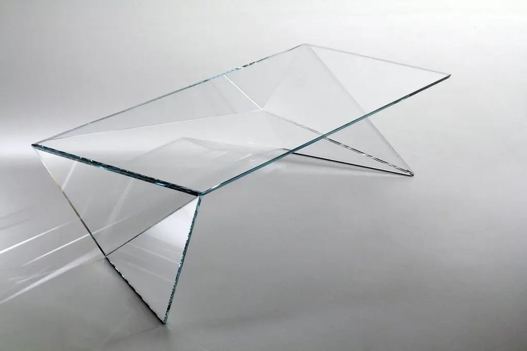 Crystal Glass Coffee Table, Transparent Origami Contemporary Design Italy