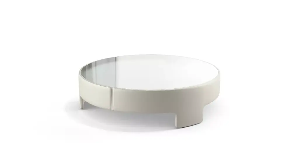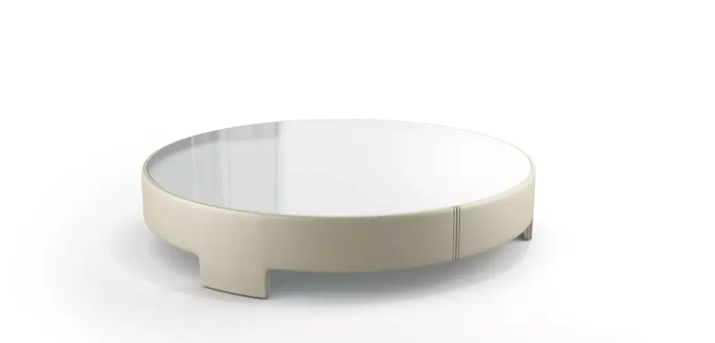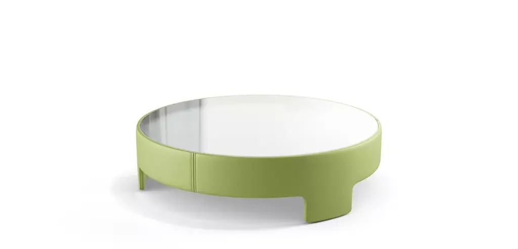 Structure upholstered in fabric, leather-like fabric or leather. Top in 5mm-thick acidic or lacquered glass matching the material used on the structure or matching the piping (if contrasting) or in the colors available for lacquer. Contrasting or tone-on-tone piping. Manufactured in Europe Structure upholstered in fabric, leather-like fabric or leather. Top in 5mm-thick lacquered glass matching the material used on the structure or the piping (if contrasting). Contrasting or tone-on-tone piping. Manufactured in Europe