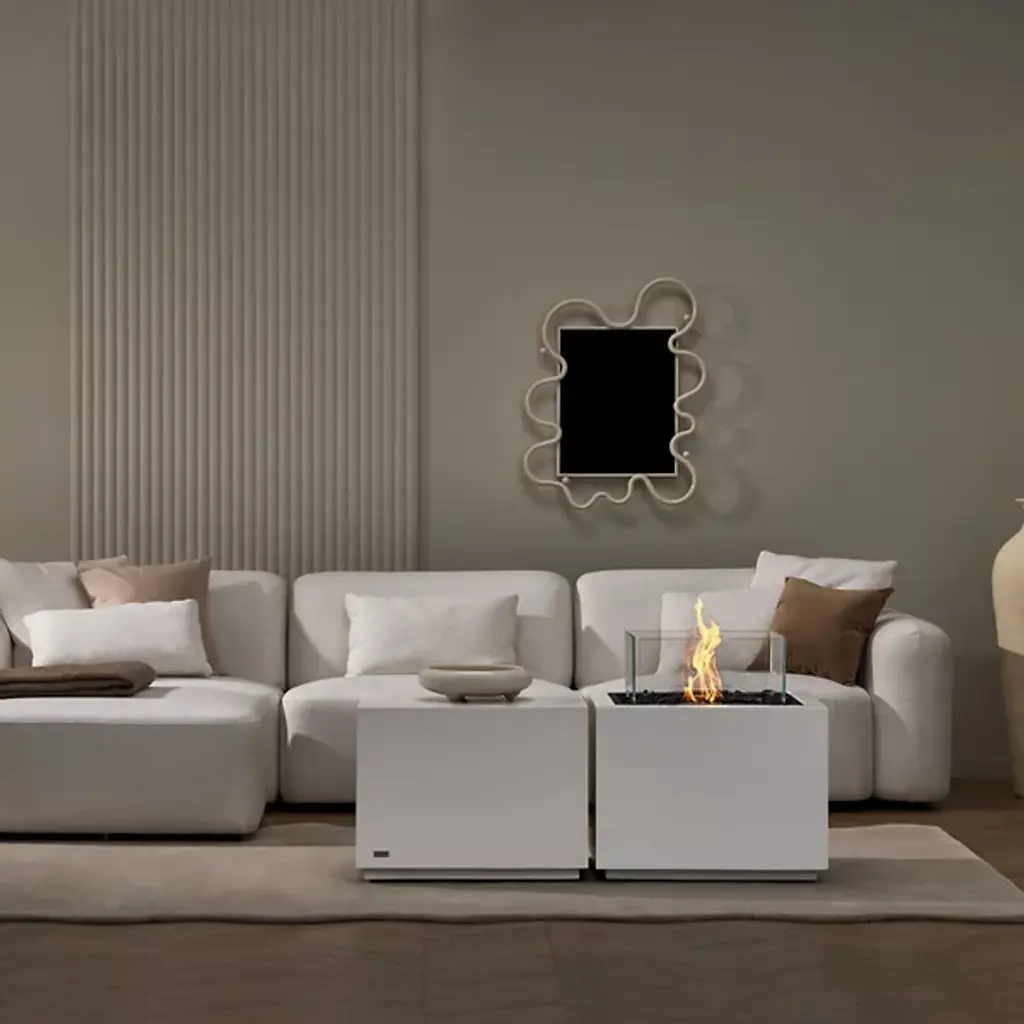 The Cube 24 Indoor/Outdoor Coffee Table from Blinde Design offers modular flexibility through its perfect cubic form in Fluid Concrete Composite construction. The piece functions as a standalone table or can be combined with additional Cube 24 units to create custom configurations. Its square geometry and generous surface area accommodate practical needs while the material's inherent texture adds tactile interest. Clean edges and straightforward construction emphasize the material's natural qualities rather than decorative details, creating furniture that prioritizes honest expression.