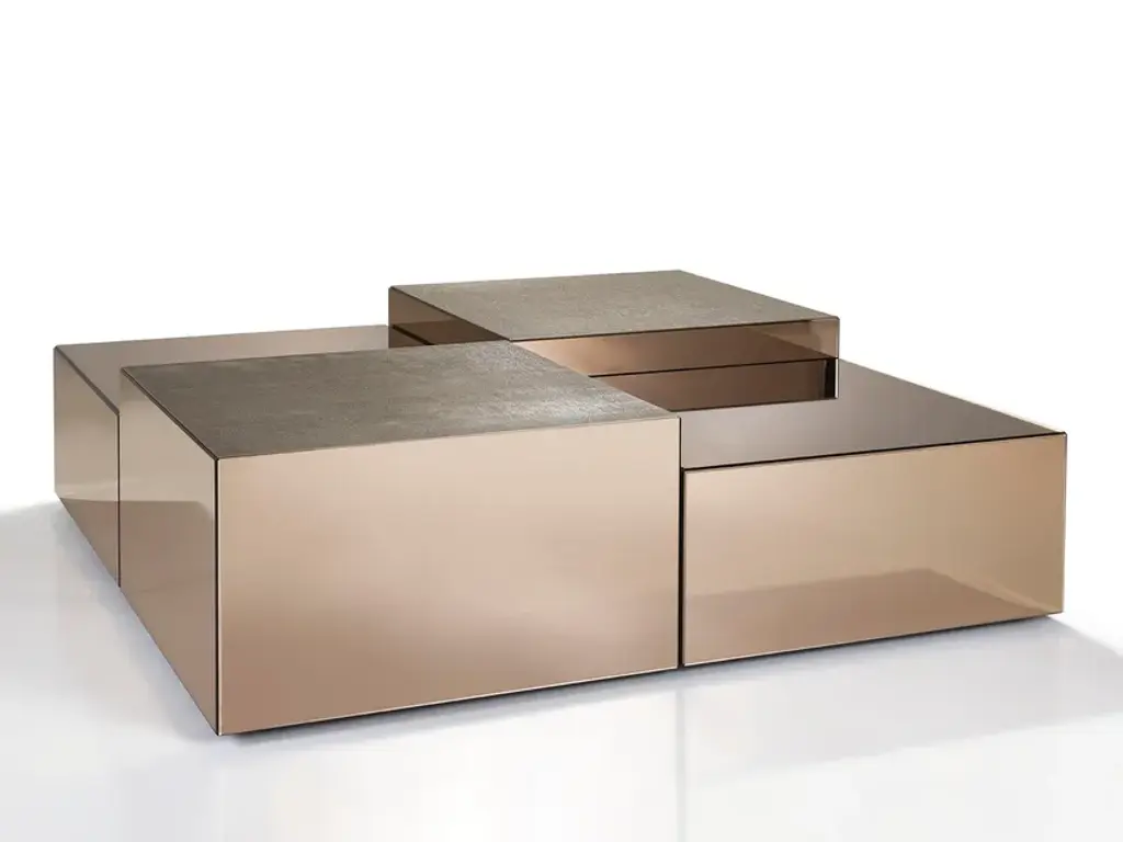 The name of this coffee table speaks for itself. The cube, an apparently simple form, is perhaps the purest and most interpreted shape in architecture and design.Structure in plywood covered in mirror. Top in mirror, foam glass, or liquid metal.