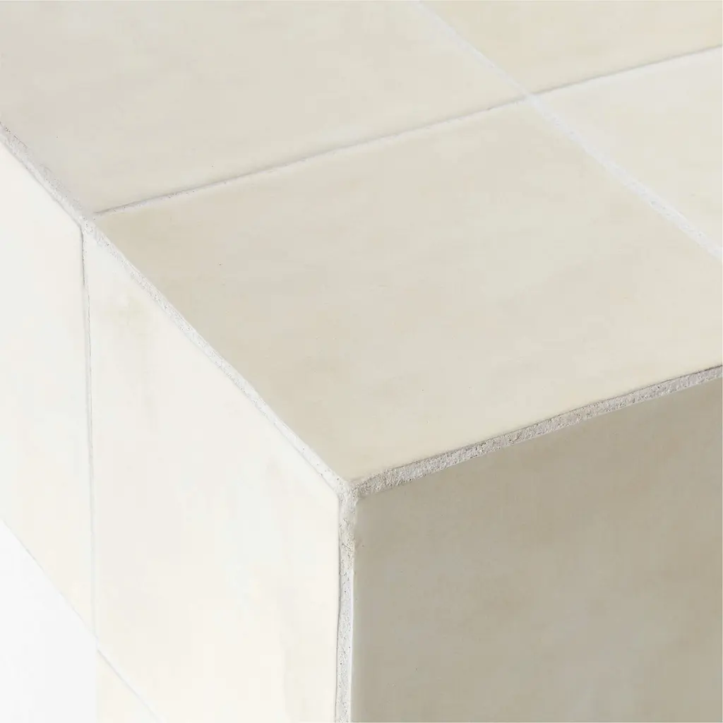 Hand-laid by skilled artisans, white ceramic tiles completely cover this modern outdoor coffee table by VUUE. Tonal variations in the tiles form a high-low grid pattern that's unique to each piece. CB2 exclusive.