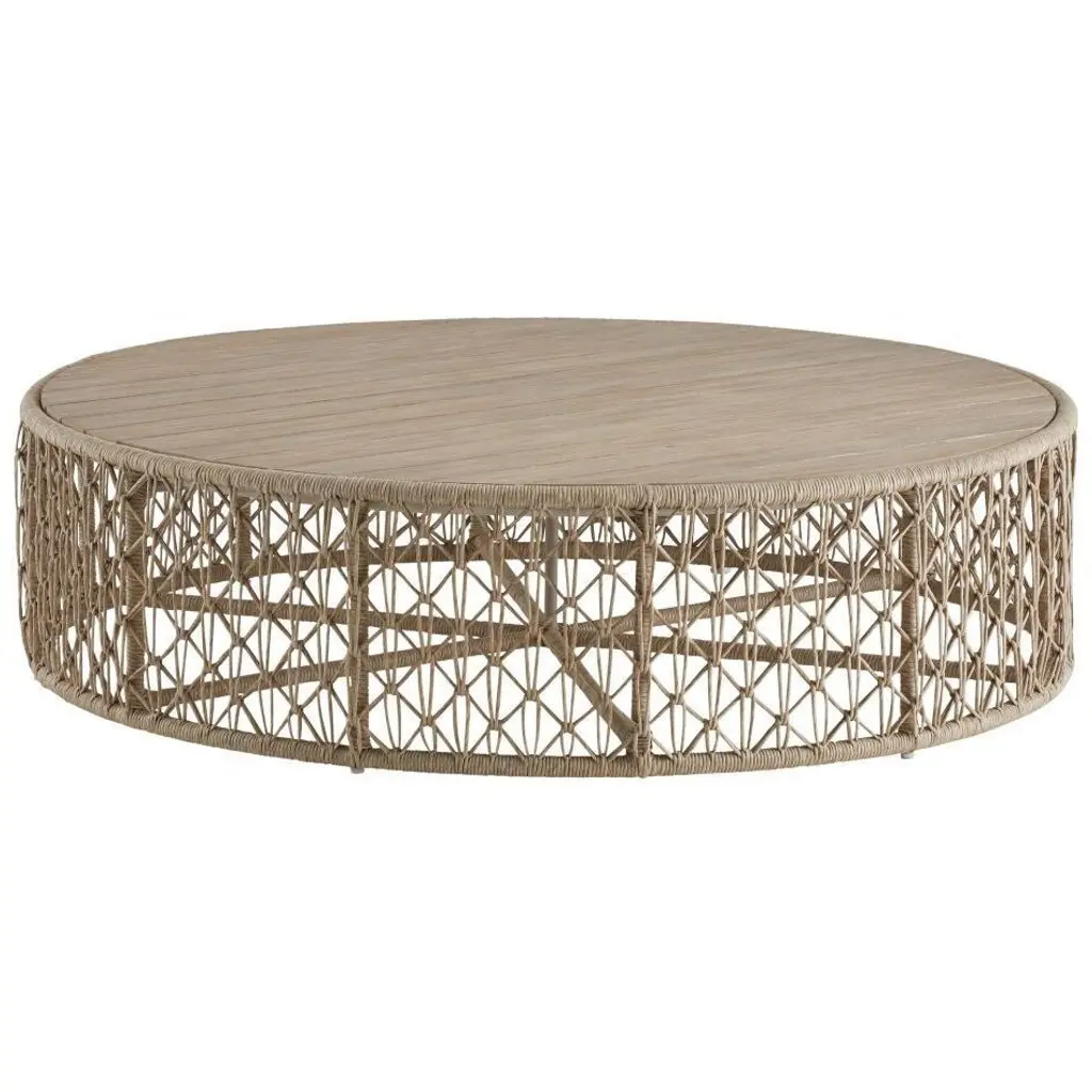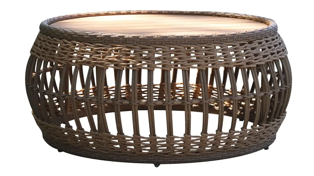 Cultured Outdoor Coffee Table With Wicker Weave Top And Looped Design