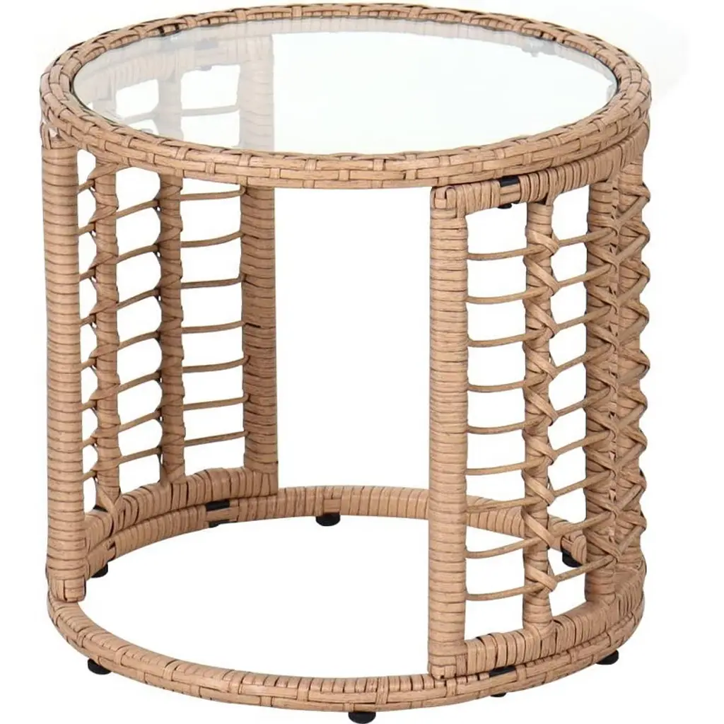 Add a stylish centerpiece to your outdoor space with this charming coffee table. Featuring a beautiful wicker weave top and looped design, it brings personality and warmth to your patio. The boho-inspired design offers a carefree, earthy touch that complements various textures in your decor. Crafted with durable polyethylene rattan, this table combines long-lasting durability with a versatile, handcrafted finish that blends seamlessly into your outdoor setting.