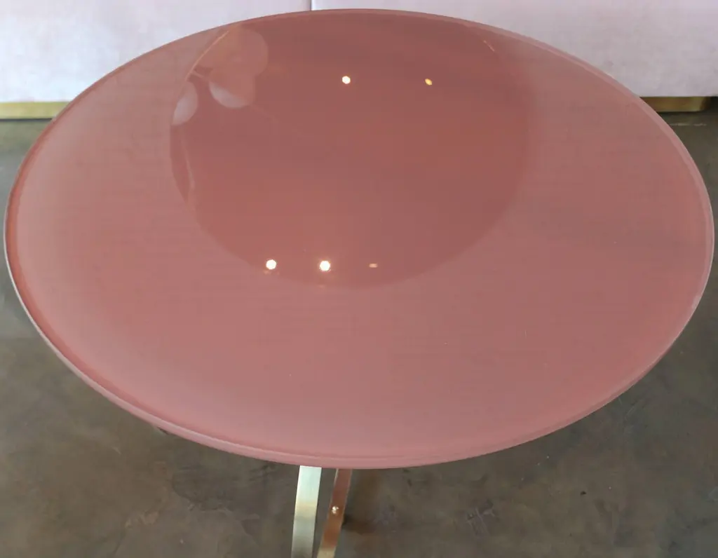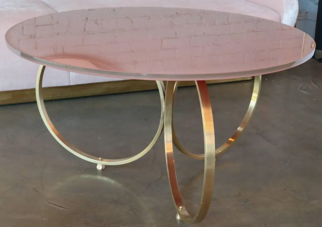 Custom Brass Coffee Table With Pink Reverse Painted Glass Top By Adesso Imports