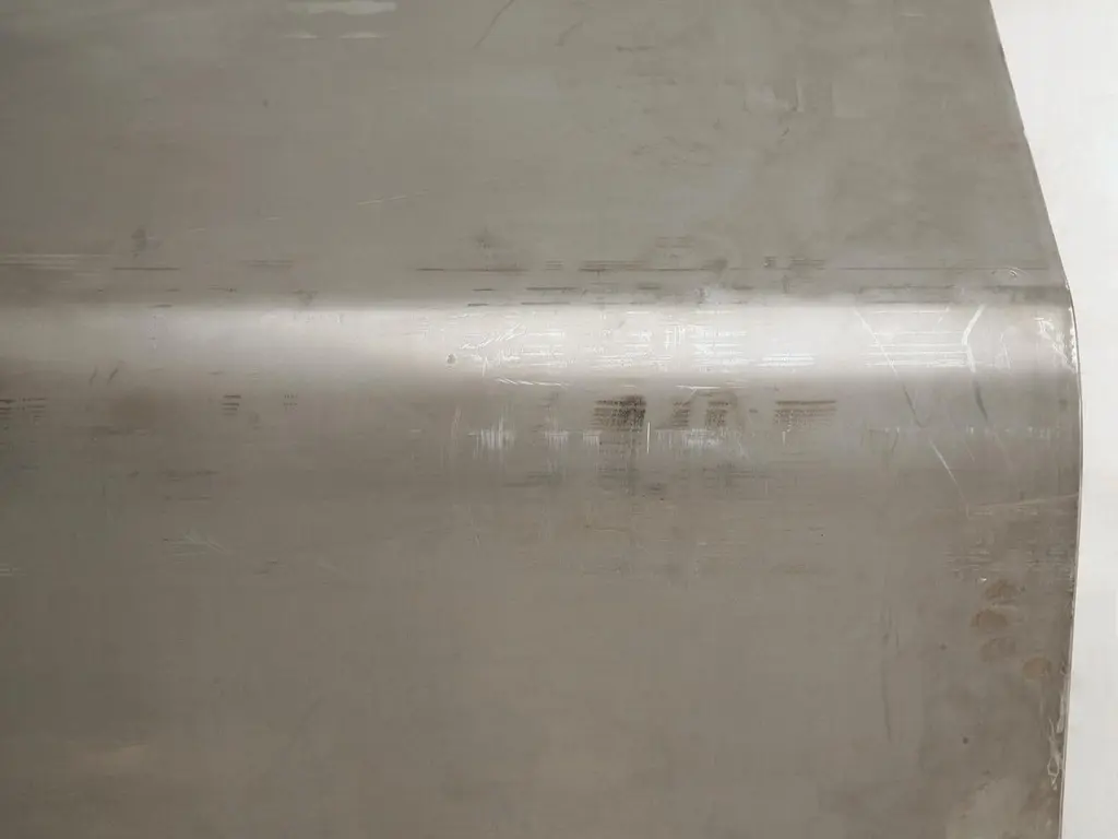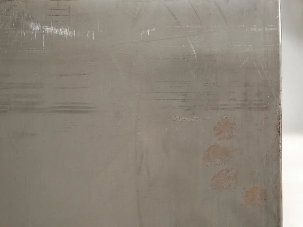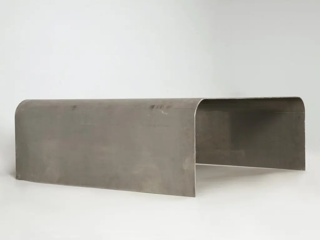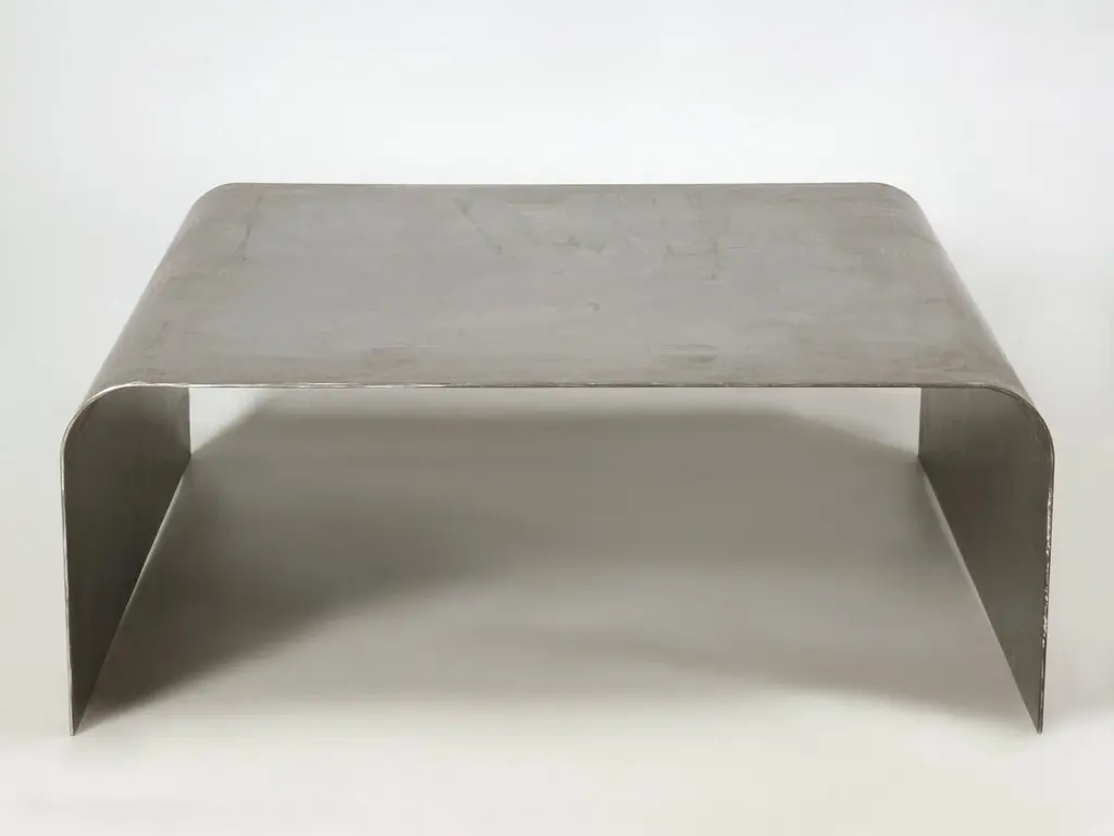The steel has a low sheen with artifice nicks 'n' scratches, which makes the Industrial style coffee table appear more rustic than reflective. A quarter-inch thick solid cold roll steel plate that we coated with a clear protective coating that keeps the coffee table from rusting. Its simple yet elegant design becomes the center of any conversation without weighing the party down. This Industrial style steel coffee table was made to our highest standards, and can be reproduced in most sizes. But keep in mind, that this is one very heavy coffee table.