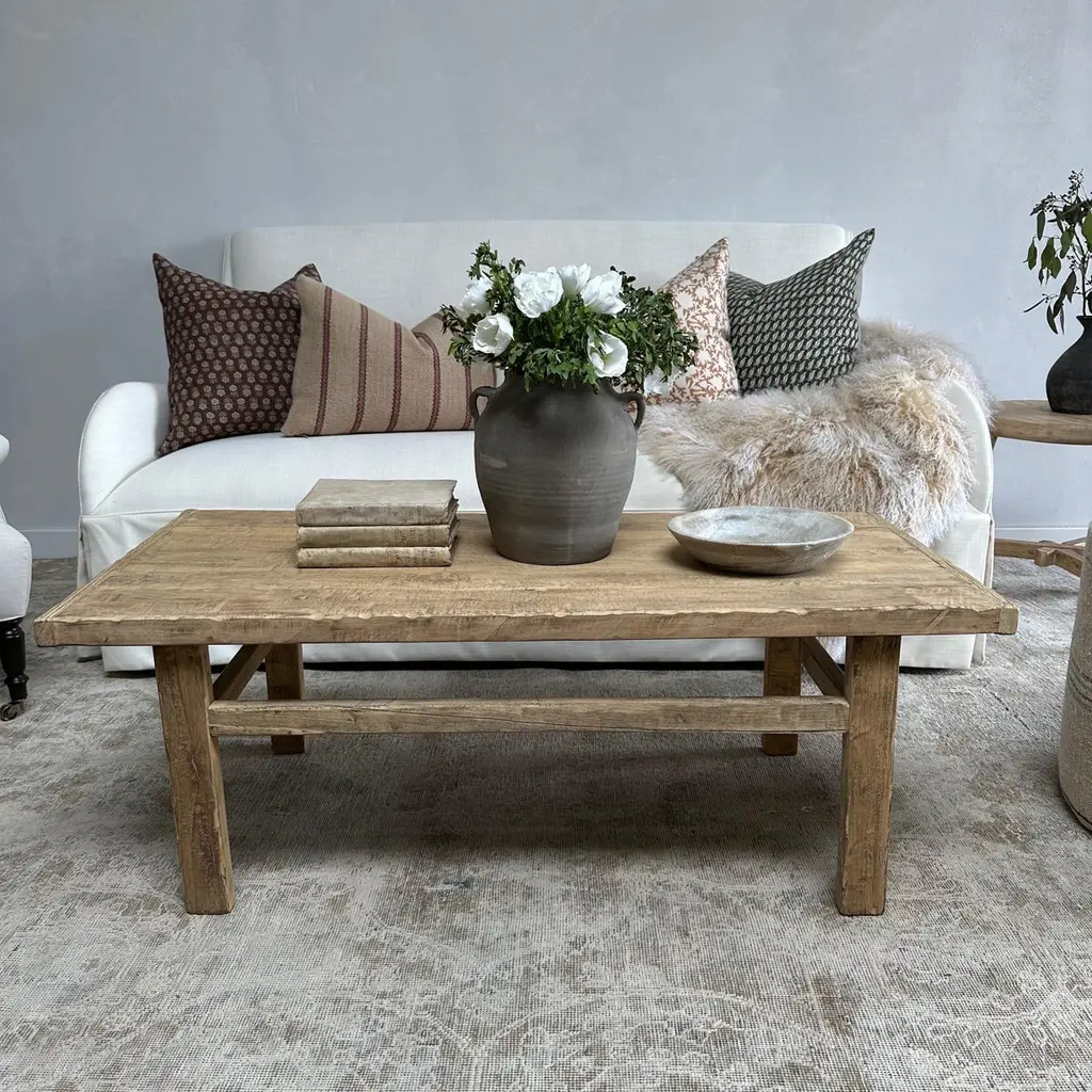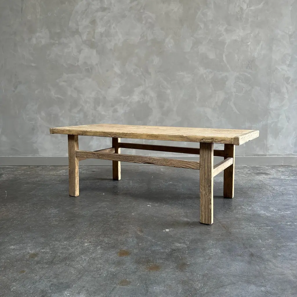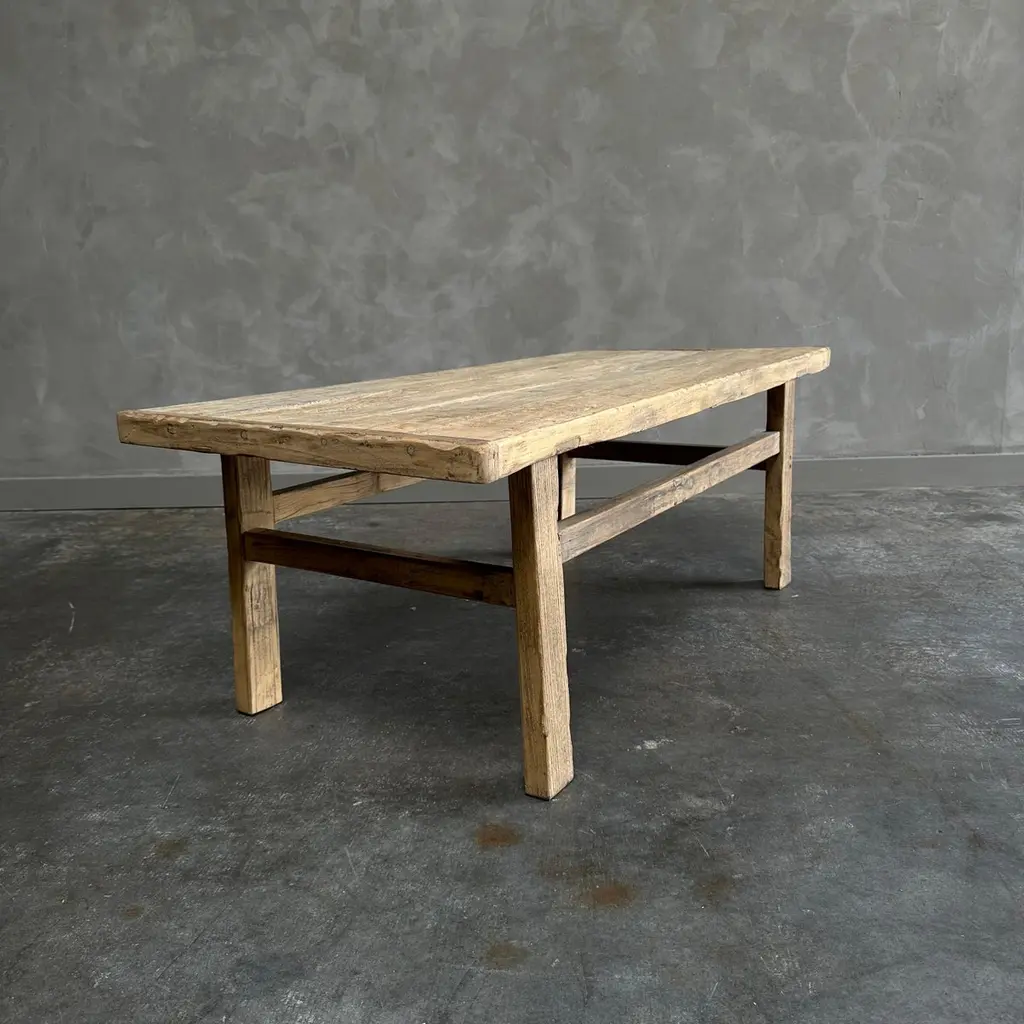 Over 2000 items in stock ready for immediate shipping, scroll down to view all of our items!Size: 48" x 27" x 17.5"hUse one or use 2 tables together to create a larger size coffee table!Custom made for bloom home inc. these old elm timbers show in its most primal, natural form. The artisanal construction methods highlight the elm woods beautiful grain pattern & knots and fissures from its past life. The most authentic materials are hand selected, and hours of hand-craftsmanship go into each piece, creating each and every beautiful table, no one is exactly alike.-if out of stock please allow 12-14 weeks for delivery-custom sizes available by order only.
