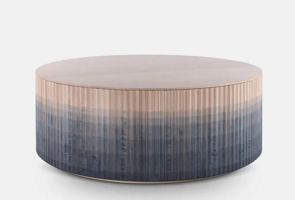 CUSTOM DIMENSIONS: Ø39" X 18"HWOOD:MapleFINISH:Cobalt Blue OmbréTOP:Crema Marfil TopCustom sizes and finishes available upon request. Additional charges may apply.Each piece is carefully handcrafted by our team using natural materials and traditional processes. Slight variations may occur.