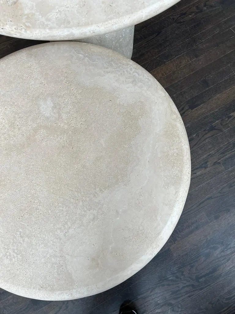 Travertine table available in 35'' diameter. For all other dimensions lead time is six weeks.