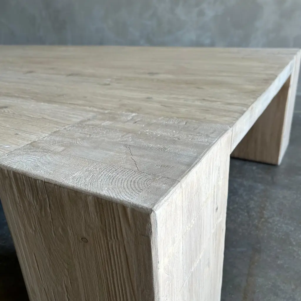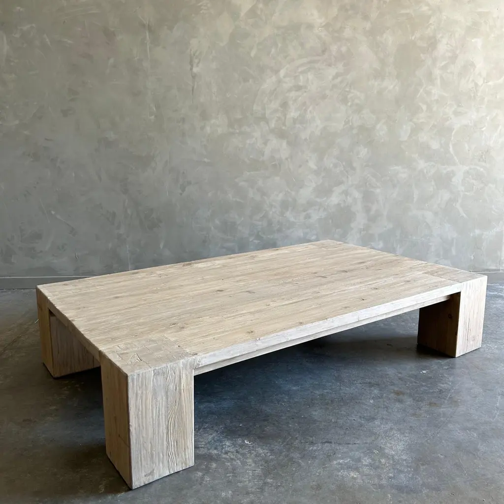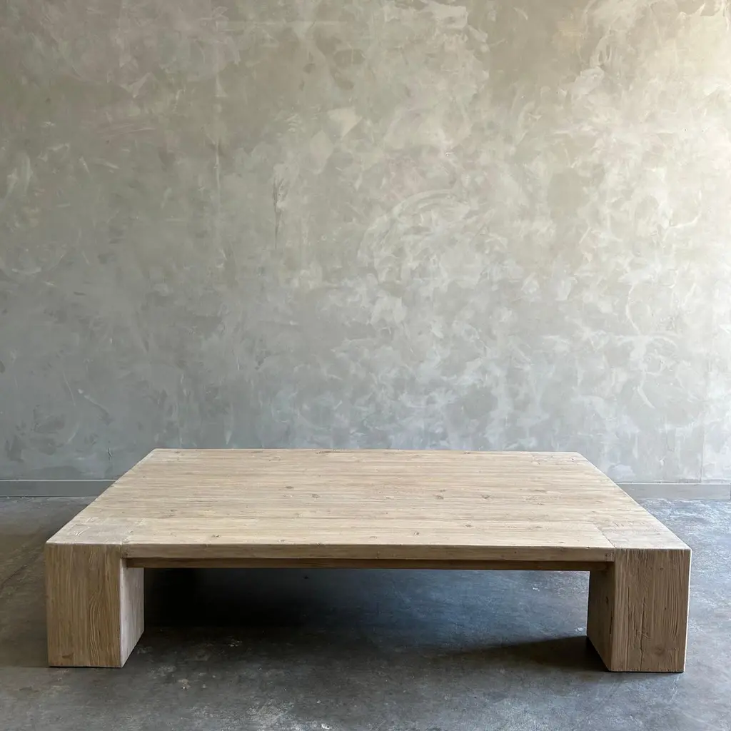 BH COLLECTIONBeam Coffee TableWith its generous rectangular dimensions are outlined by chunky squared legs, and the dovetail joinery detailing on its sides adds a sophisticated touch.Nautral reclaimed elm woodDimensions 72”w x 47”d x 16”hCare Instructions: Avoid direct sunlight; avoid exposure to heat; avoid excessive moisture. Use coasters and trivets to protect the surface from wet or hot cups or dishes. Avoid sharp objects. Address spills immediately by wiping with a soft, dry cloth.Custom sizes available please inquire with bloom home inc for a custom quote.