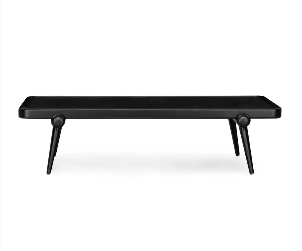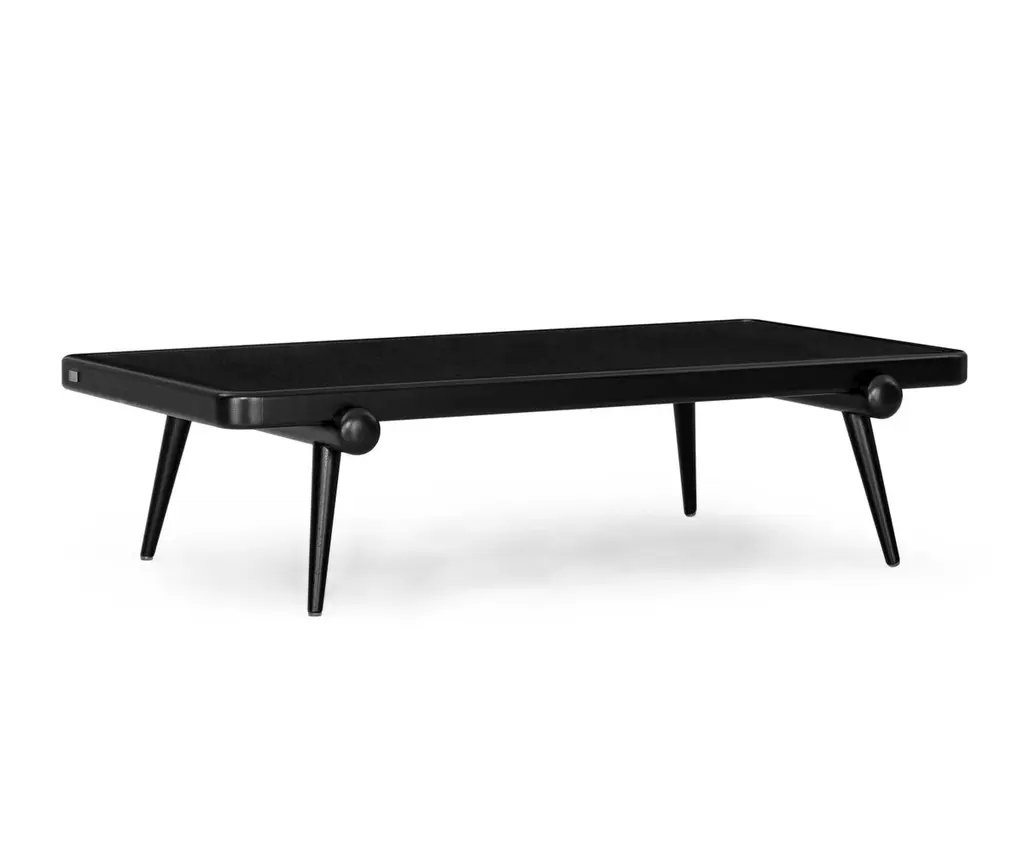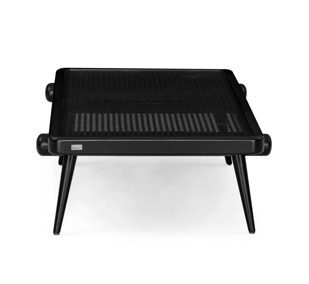 A Plot coffee table designed by Sérgio Batista for Uultis with 47-Inch top, black matte finish and black cane. Sleek, sophisticated, and versatile, the Plot coffee table is a harmonious blend of modern design and timeless elegance. Its black wood frame with a matte finish is complemented by intricate black cane webbing, which sits beautifully beneath a colorless tempered glass top. This thoughtfully designed piece creates a visually light yet highly functional surface, perfect for displaying books, decorative accents, or serving drinks during gatherings.The Plot table’s soft, clean lines and vintage-inspired aesthetic make it an adaptable addition to various home decor styles, whether contemporary, traditional, or mid-century modern. The black cane detailing adds texture and character, while the glass top provides durability and easy maintenance, ensuring this piece remains a centerpiece in your living room or family area for years to come.Beyond its aesthetic appeal, this coffee table is also highly practical. Its compact yet spacious design works seamlessly in apartments, open-concept homes, or even office reception areas. Crafted from environmentally sustainable materials, the Plot coffee table reflects a commitment to mindful living and quality craftsmanship.Delivered with basic assembly required, the table includes step-by-step instructions for effortless setup. Whether styled with curated decor pieces or left minimalist to showcase its stunning construction, the Plot coffee table is a statement of understated luxury. Perfect for entertaining, relaxing, or organizing, this signature table is a true celebration of design.