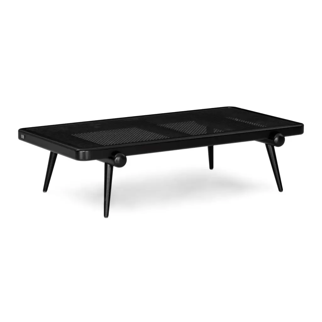 Customizable Coffee Table With Black Wood And 47-Inch Cane Top – Plot Collection