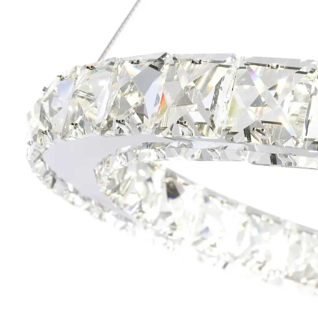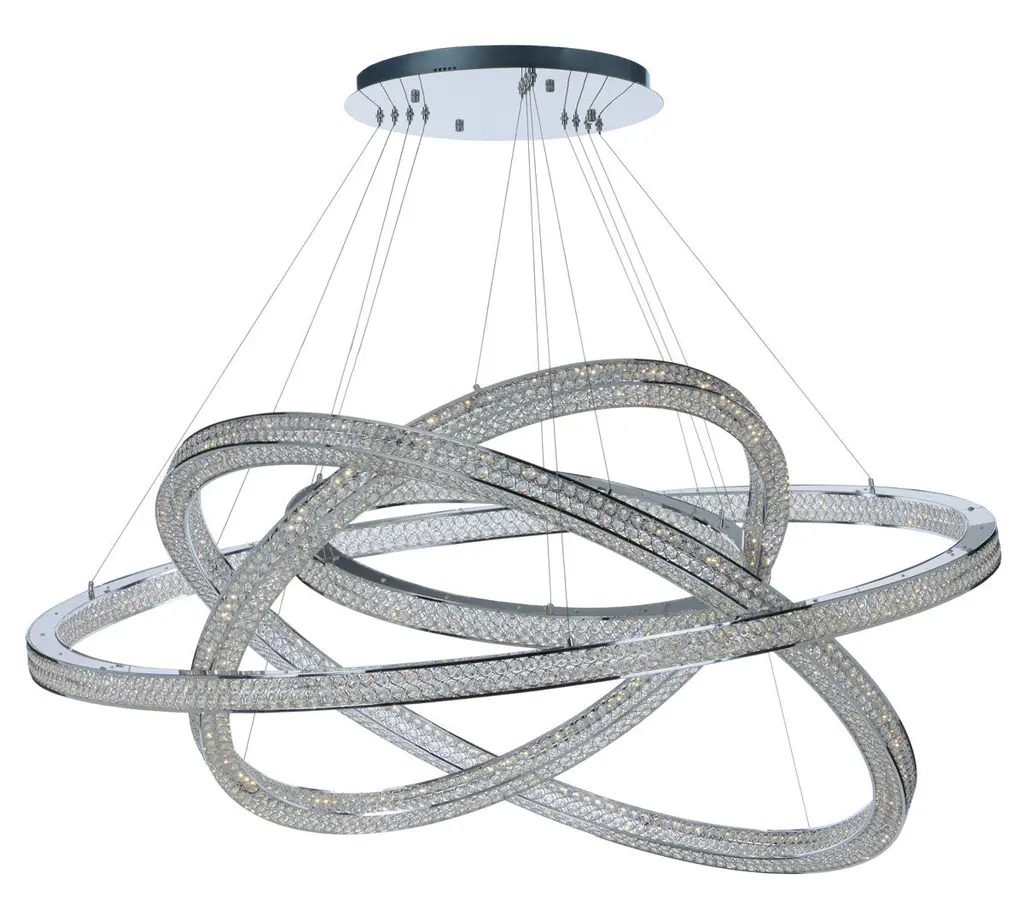The Ring 32 inch LED Chandelier would make a stunning focal point in an open plan room. This glistening source of light features three rings that you can suspend at angles to form an orbital silhouette. Hang over a dining room or a coffee table in a high-ceiling living room for impact that will never fail to impress