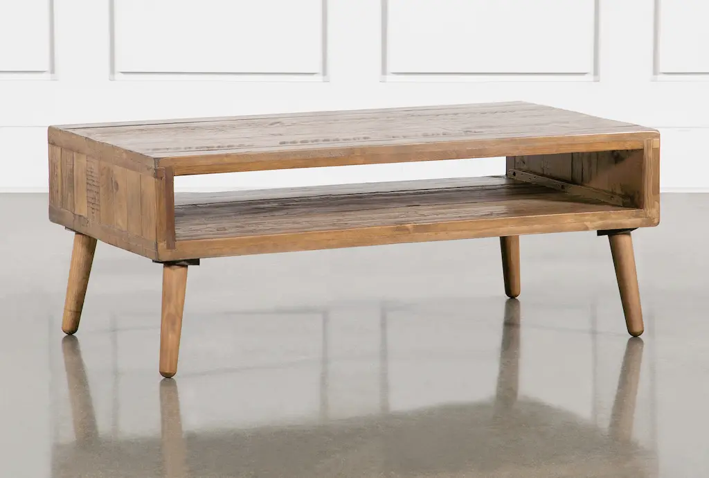 Dakota Natural 44" Wide Rectangle Wood Coffee Table | Shelf | Pine