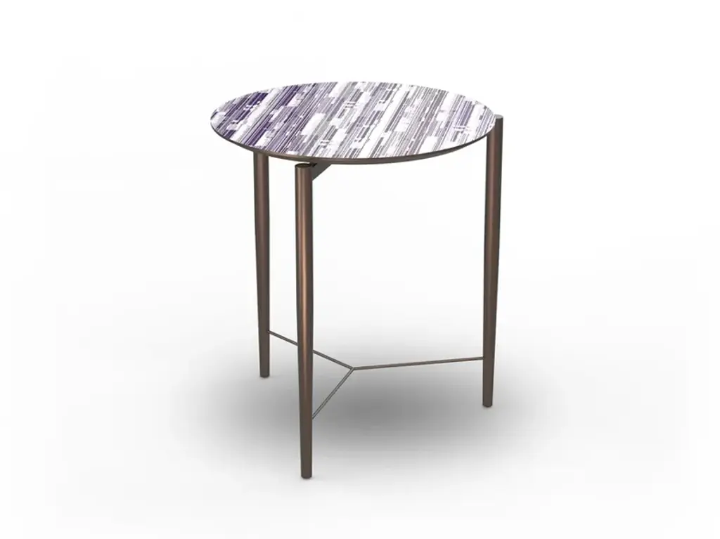 DALì COFFEE TABLE WITH ROUND TOP | DL-01/02: Metal structure with lacquered finish in WHITE, BLACK, BRONZE and BRASS color . Round top in mdf with surface coating: matt lacquered material and material with artistic print with non-toxic protective matt protective finish and with artistic print with extra gloss glossy lacquered finish. The price refers to the configuration shown in the photo. Momenti's Home & Contract collection offers a wide range of furniture products and accessories, all customizable. Each product can be customized through the choice of various details such as different bases or handles to make it unique. It is possible to choose between 3 Collections which include 36 graphics designed specifically for the Home & Contract collection. The result is a unique product, a mix of art and design, enhanced by a selection of refined and hand-crafted materials.Our furniture is created with: - wooden particle panels created by the use of salvaged wooden material, thus avoiding the cutting of new trees. Low-formaldehyde glues have been used for this product. - composite alluminium alloy panel, with an interposed core of polyethylene, the simplest of the synthetic polymers and the most present in nature.The working process takes place in full respect of the current environmental regulations. Our compound is then applied to these supports, which is made of non-toxic, odor-free, water-repellent and easy to clean resins.