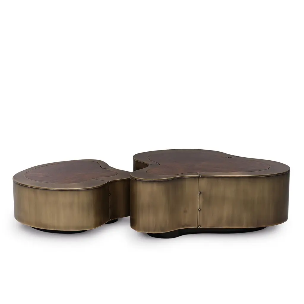 Dalia Antique Brass Walnut Set Of 2 Coffee Table