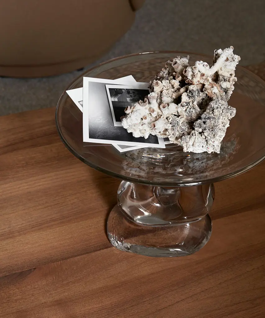 With a fluid and organic shape, the Damo Glass Centrepiece forms an elegant, beautiful focal point in any table setting. Crafted entirely from glass, the sculptural piece appears to be elegantly floating in the air, as though made purely of water; perfectly representing its name which was inspired by Damona, the Celtic goddess of sacred waters. As each piece is handmade by a talented artisan, every individual centrepiece is unique. Use the Damo Glass Centrepiece as a decorative fruit bowl, to serve delicate dishes to guests or place it on your coffee table or windowsill to elevate your space.Designed and produced by the Copenhagen-based studio Ferm Living.