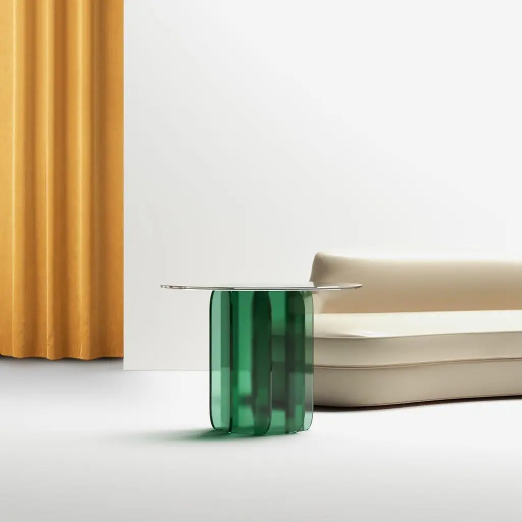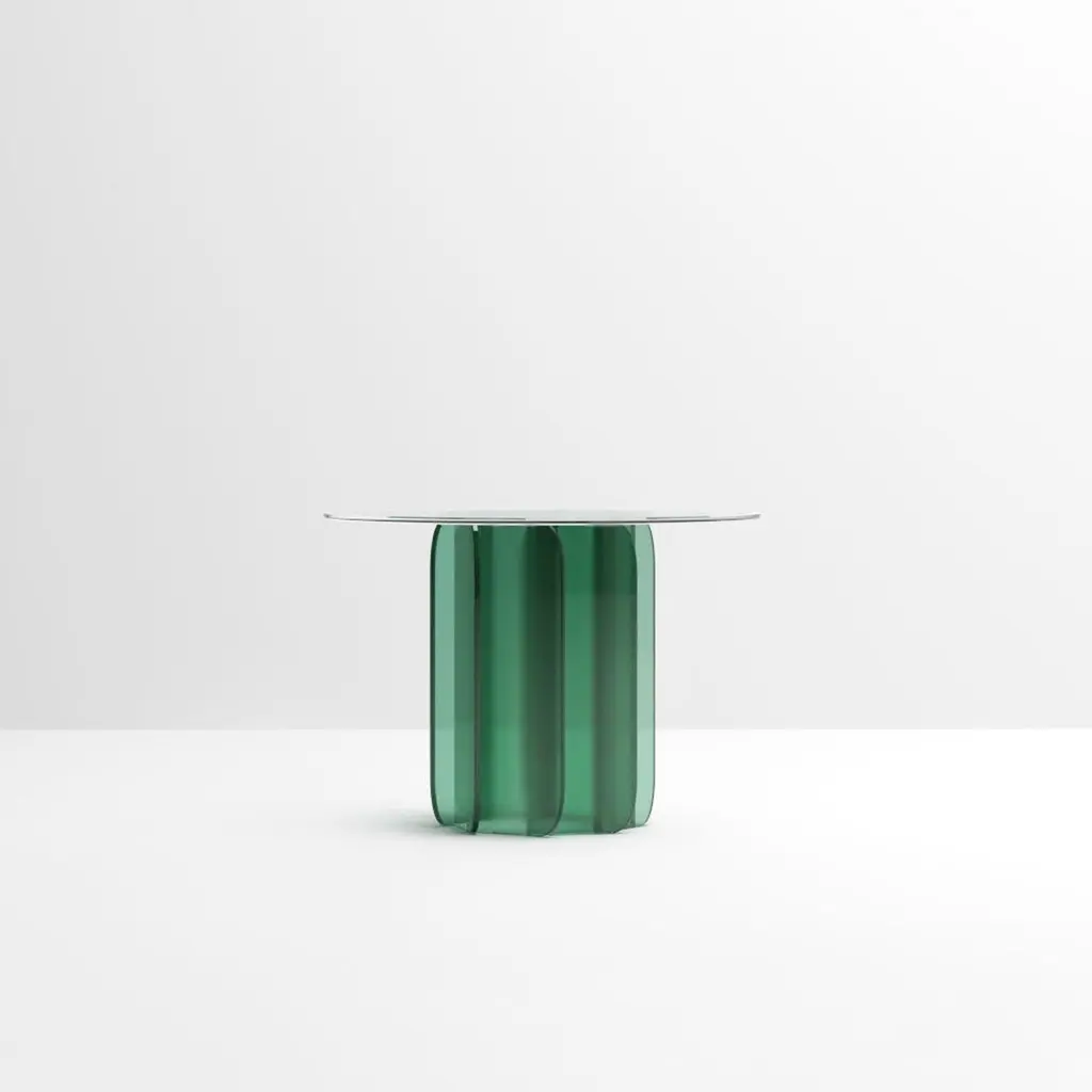 Danse 68 Sandblasted Green Coffee Table by VUUN ITALIADimensions: Ø 68 x H 48 cm. Materials: Sandblasted green glass.Available in different finishes and sizes. Please contact us.VUUN Italia creates infinitely customizable Design products designed to furnish the most refined environments. Industry and craftsmanship come together, resulting in a production totally MADE IN ITALY, as well as the fruit of the knowledge of master glassmakers and wood craftsmen in the Milan area.The study and design of the products is taken care of by Italian designer Andrea Petterini, while the name VUUN originates from the term "vün," which in the Milanese parlance means "one."