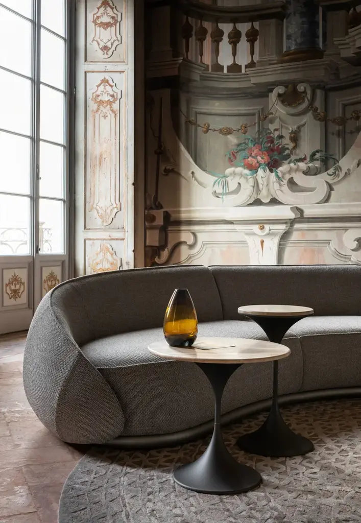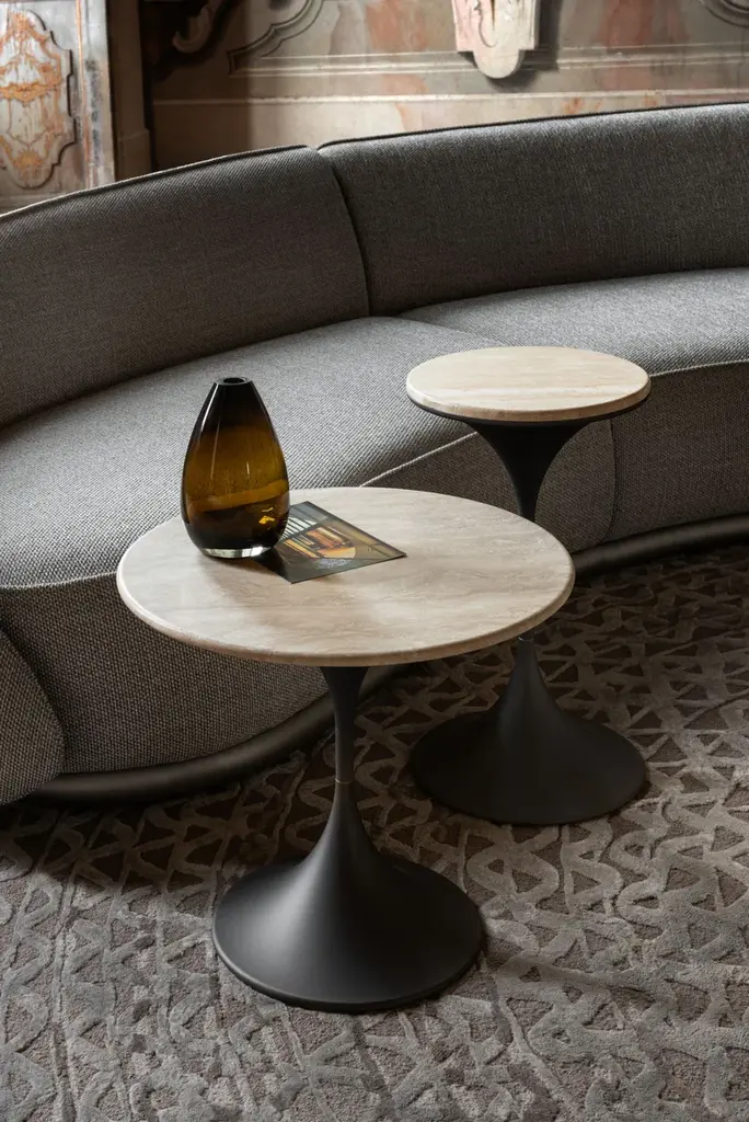 “Dapertutto” is a disturbing character, part magician and part devil from “The Tales of Hoffmann”, Offenbach's opera fantastique. “Dapertutto” could be the perfect name for this side table designed to sneak “everywhere”, in every environment with its form that is both archetypal (think of the Diablo game) and very contemporary (reminiscing black holes), but still ambiguous and reversible.Available in two heights and different finishes.