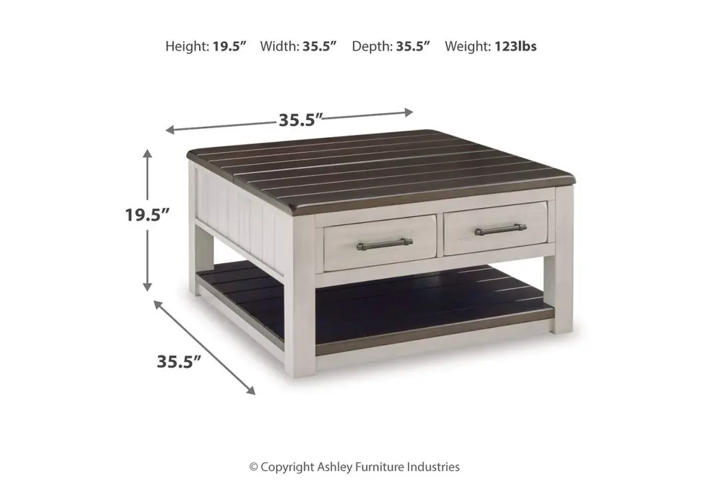 Make a farmhouse-inspired statement with our Darborn coffee table. Beautifully crafted to stand the test of time, the planked look and clean two-tone finish lend a relaxing vintage feel. A clever lift-top section and spacious storage drawers double up on form and function. Weight 127.000 lbs. (57.15kgs.)
