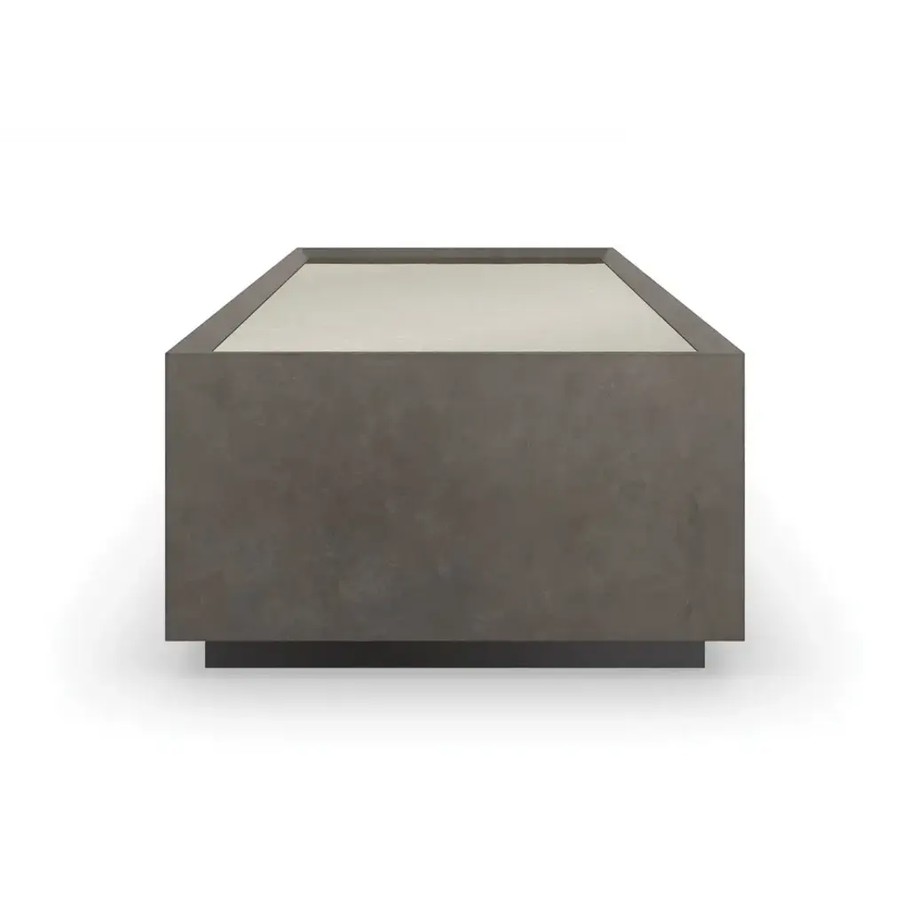 A designer go-to, this simple yet refined cocktail table adds depth and warm reflection in an alluring mix of materials and finishes. The same size and scale as our beloved Cocktail Couture table, it features a recessed antique mirrored top and overall broken leaf finish in Twilight Frost. A fade-away, Almost Black plinth base gives it a floating appearance. Style with a pair of our Dark Matter end tables to create a seating space with infinite shimmer and design potential.