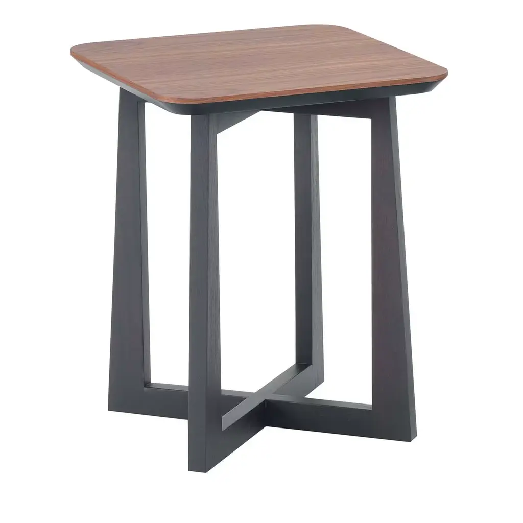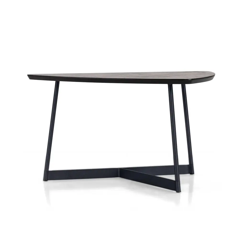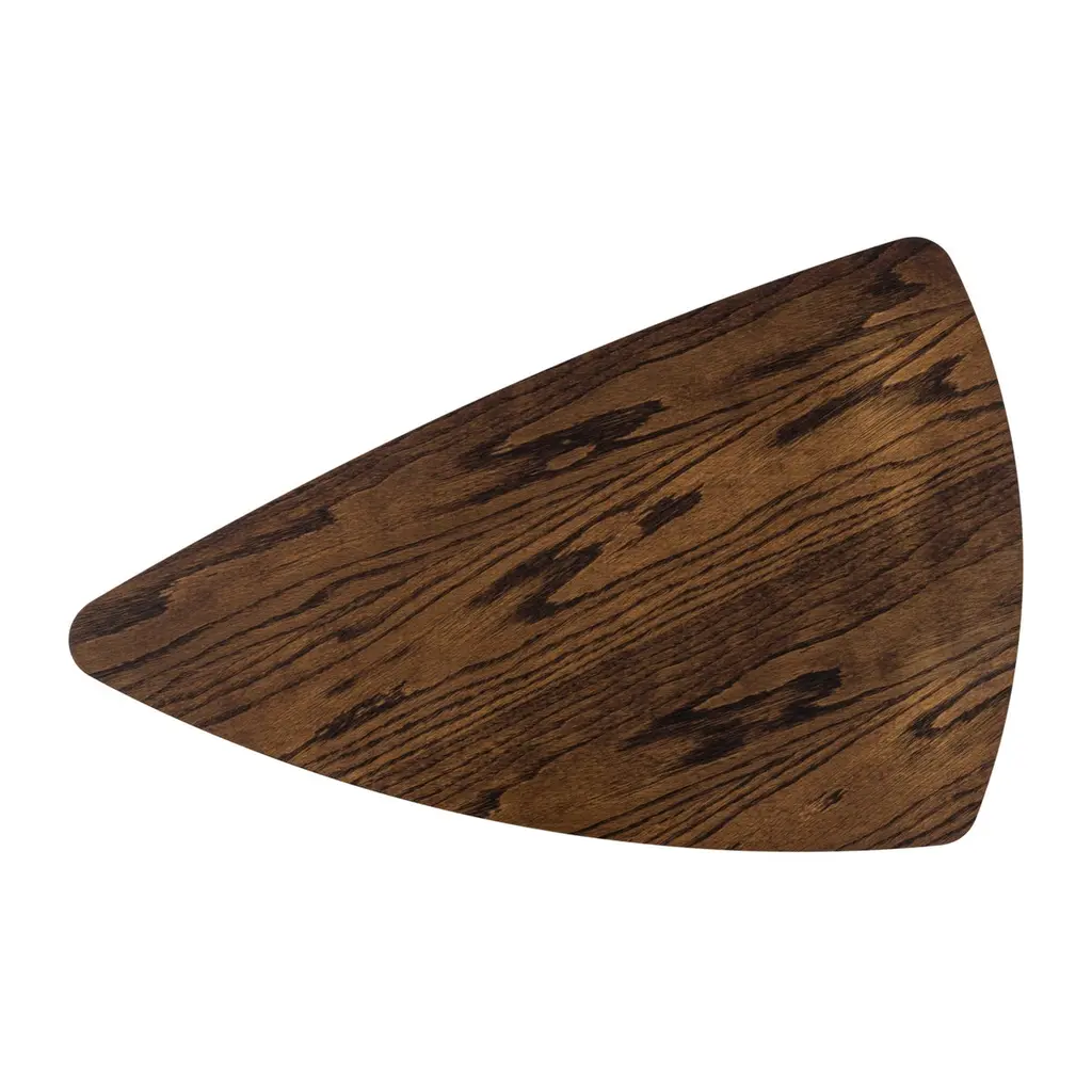 A Tria coffee table designed by Sérgio Batista for Uultis with dark oak 27-Inch veneered top and black metal base. The Tria Coffee Table, crafted with a 27-inch dark oak veneered top and a sleek black metal base, brings a bold yet minimalist aesthetic to your living space. Its unique triangular design allows for endless versatility, making it a functional centerpiece or an elegant side table. Perfect for modern or industrial-inspired interiors, this table enhances any room with its rich wood grain finish and streamlined form.Designed for both residential and commercial use, the Tria Coffee Table adapts seamlessly to a variety of settings. In a home, it can anchor a cozy seating area, provide surface space for decorative items, or hold books and beverages during gatherings. Its triangular shape also allows it to be paired with additional tables for a layered, dynamic arrangement. In a commercial environment, such as an office lounge or hotel lobby, it serves as a stylish yet practical focal point.Made with a commitment to sustainability, the Tria Coffee Table uses responsibly sourced materials and environmentally conscious practices. Its durable black metal base not only ensures stability but also complements the warm tones of the veneered top. Minimal assembly means it’s ready to elevate your space in no time. The Tria Coffee Table is more than just furniture—it’s a functional piece of art that blends style, practicality, and environmental awareness. Whether used alone or in combination with other pieces, it creates a sophisticated atmosphere that invites both comfort and modern charm.