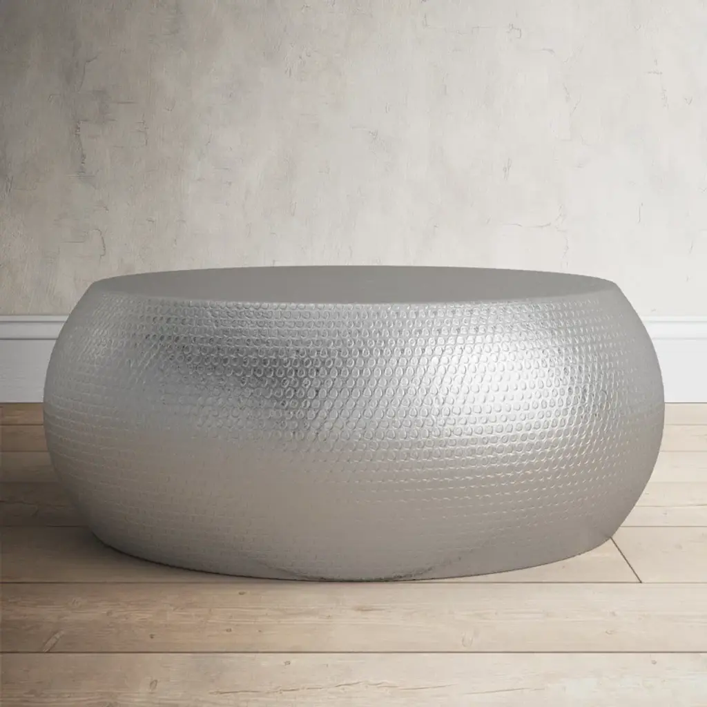 This metal drum coffee table is a sure way to bring a focal point and some extra surface space to any living room or den. It's thoughtfully crafted from high-quality metal in a silvery finish that'll pair well with any color palette or design aesthetic, from coastal cottage to traditional farmhouse. Best of all, this sofa table has an intricate hammered texture that glimmers at every angle. Best of all, this coffee table arrives fully assembled, so you can get right to decorating.