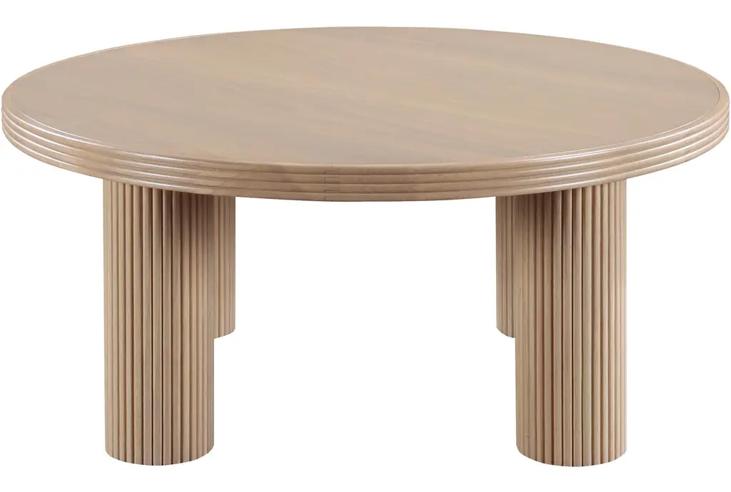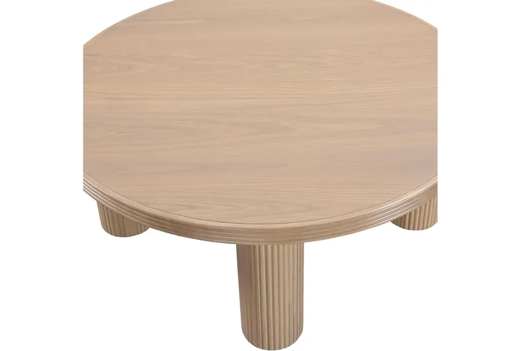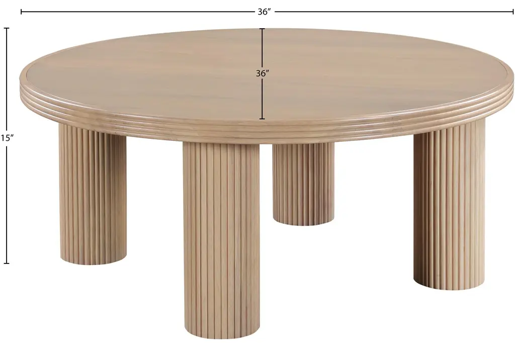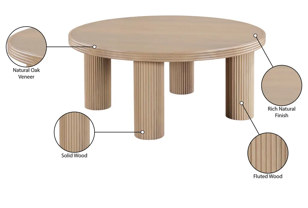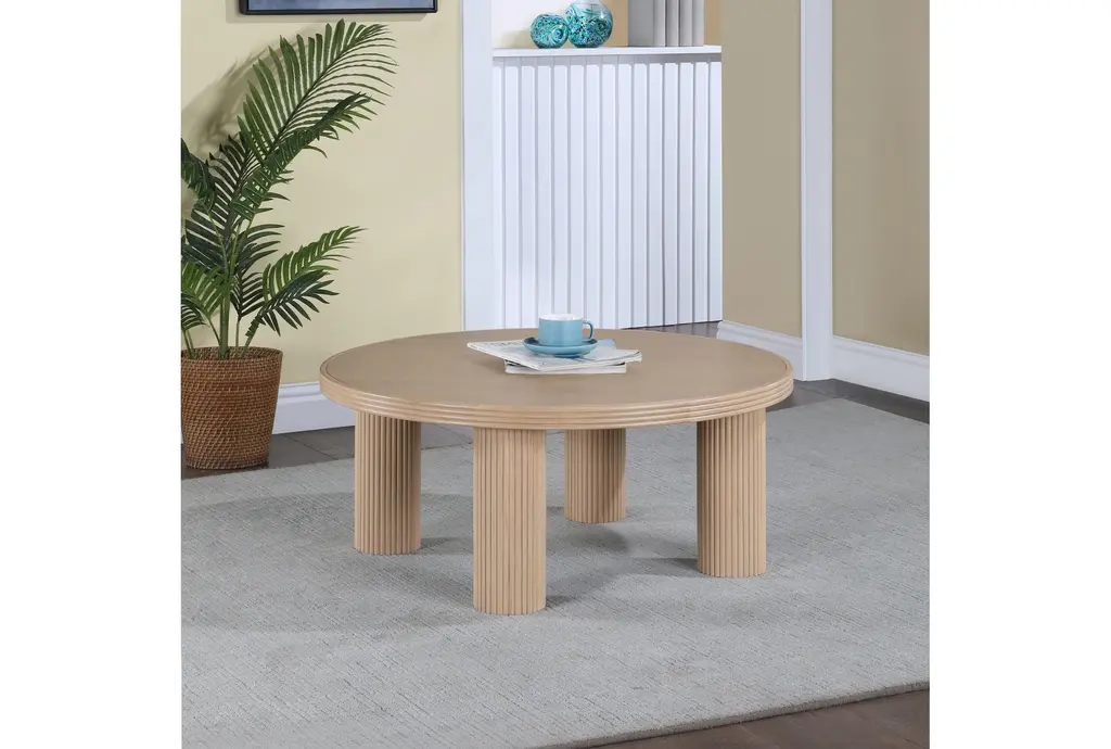 Daya Modern Natural Oak Wood 36" Round Fluted Coffee Table