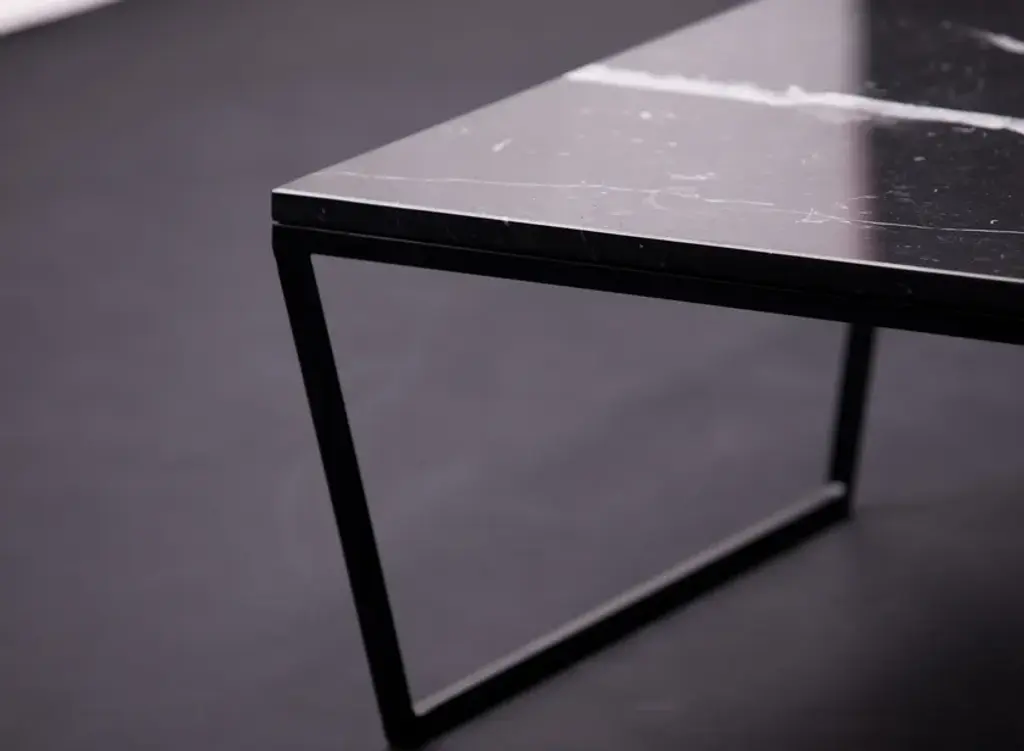 The design of the striking coffee table is based on the idea of a bull, which goes into position to attack. You can see that especially from the side. While the long table legs run diagonally to the front edge, the shorter ones are bent and represent the horns of the powerful animal. The solid marble tabletop with its strong contrasts and structure reinforces the impression of power and passion.The contemporary Berlin design enchants with the sparing use of material to create an impression of weightlessness.This is made possible by welding thin but highly robust square steel tubes (1.5 cm x 1.5 cm). The steel used is German quality steel, is untreated and develops a unique patina over time, depending on the surrounding climate. This creates an exciting contrast between industrial-minimalist character and filigree construction. DEA is also available with white or black powdered steel which does not develop a patina.The metal frame is completely welded together and will be delivered in on piece. DEA has a range of 20 mm thick high-quality Italian marble is available to choose from:- Nero Marquina (primarily black with fine white lines)- Verde Alpi (primarily grey with fine white lines)- Rosso Verona (primarily various shades of red)- Grand Antique (similar to Verde Alpi marble, but with more white inclusions)- Fior di Pesco (mixture of red, white and grey)- Arabescato (primarily white mixed with some light grey inclusions) - Grigio Billiemi (mixture of white and grey lines)- Pietra Grigia (primarily mouse grey with fine white lines)- Verde Guatemala (mixture of green and white inclusions, which effectively results in a turquoise tint of the marble)If you should wish your DEA to have different dimension or in case you're after a different marble, please do not hesitate to contact us.Important note: The untreated steel version is indeed untreated. This means it will have scratches, signs of the welding (including "rainbow effect") will clearly be visible and the steel will develop a patina over time (i.e. the steel will show signs of rust). This is all intended and part of the design of the product. If the aforementioned effects are not desirable, please choose the black or white powder coated versions of this product. These are protected and do not develop a patina.